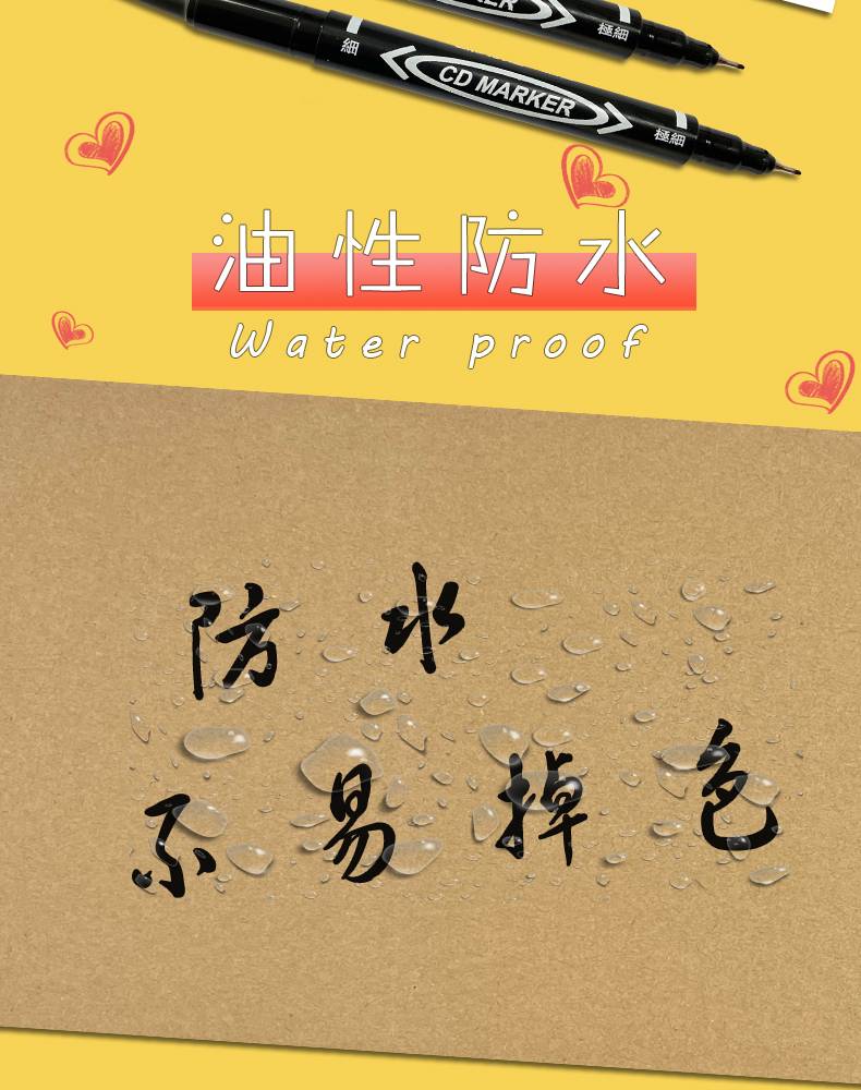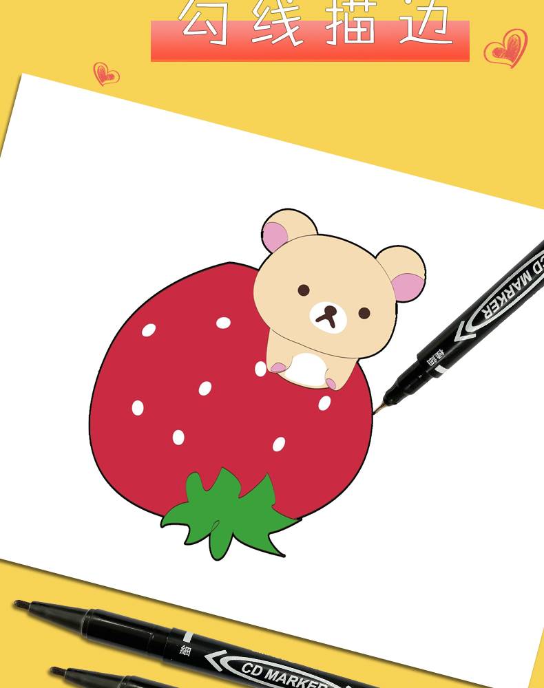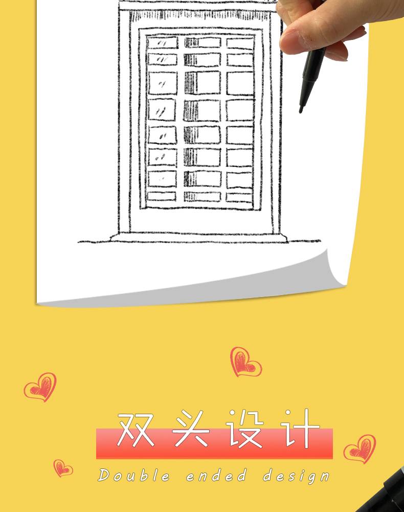 记号笔油性细头儿童绘画勾线笔黑色双头描边防水不易掉色不可擦标