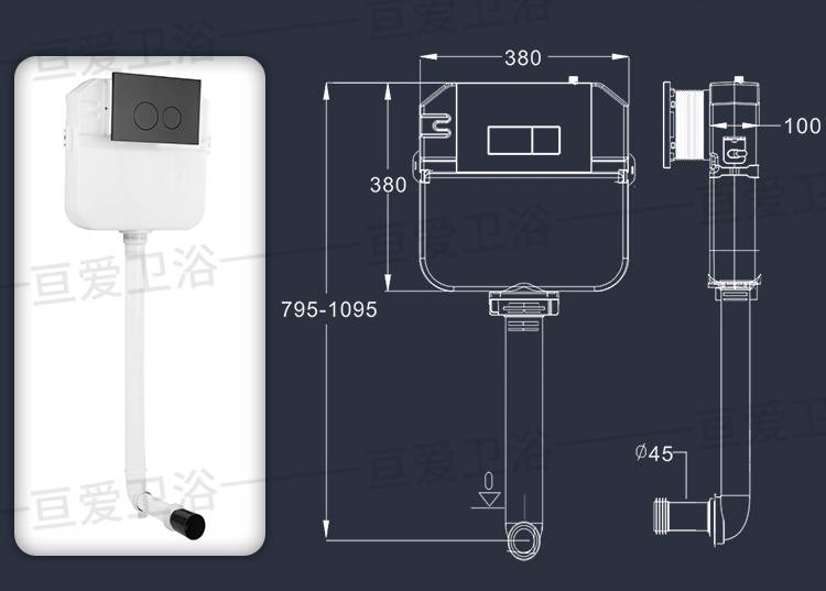隐藏式水箱嵌入式蹲坑便池暗藏暗装蹲便器大便器入墙式冲水箱蹬坑