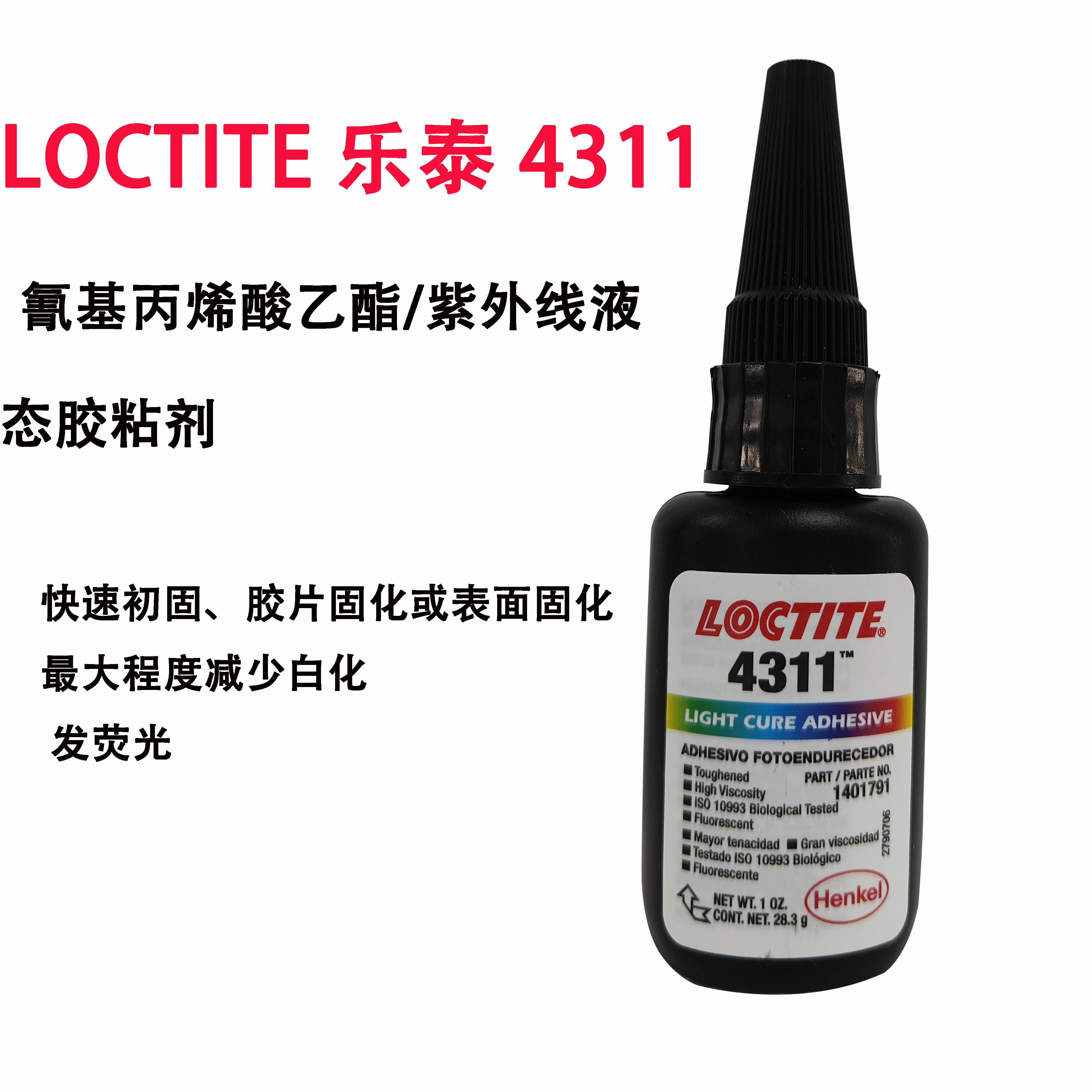 汉高Loctite乐泰UV胶4311氰基丙烯酸乙酯紫外线液态胶粘原装正品