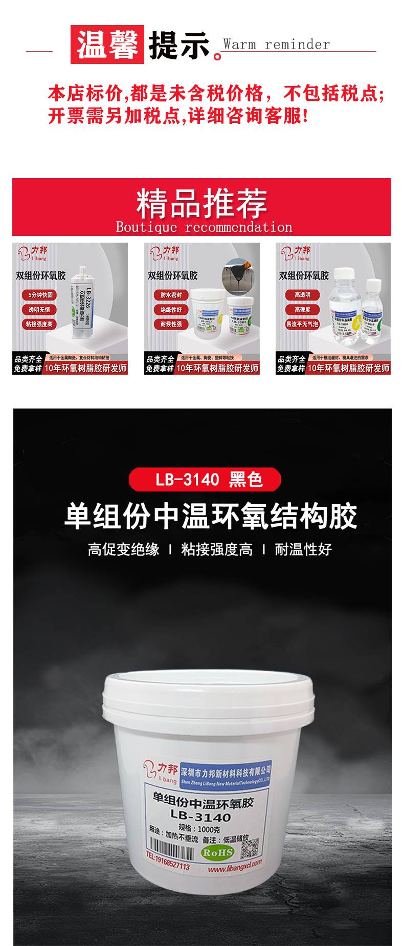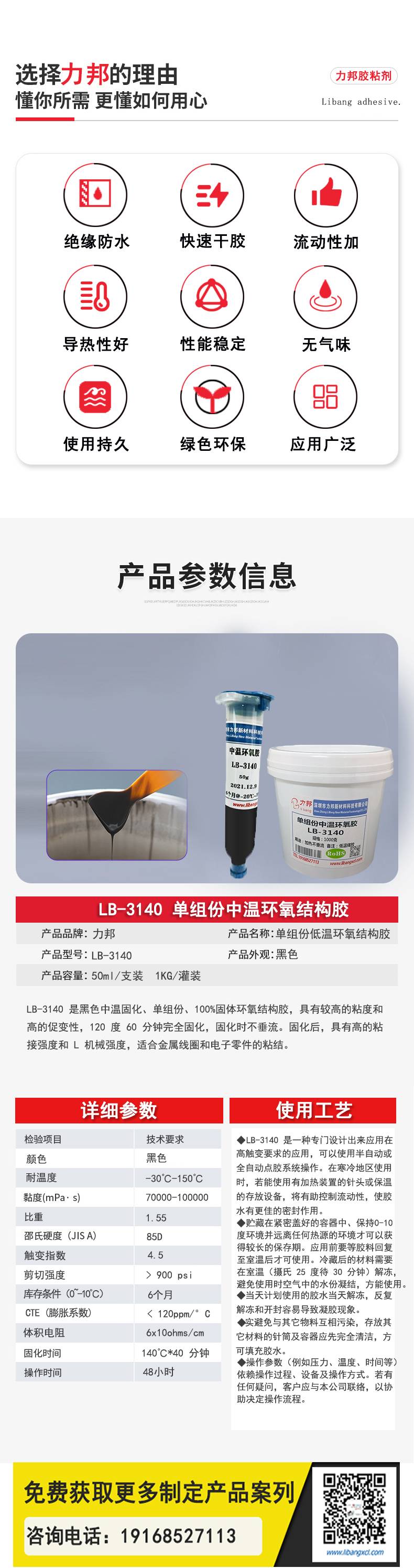 LB-3140环氧胶黏剂 变压器电感线圈结构胶粘接力强 不垂流 力邦