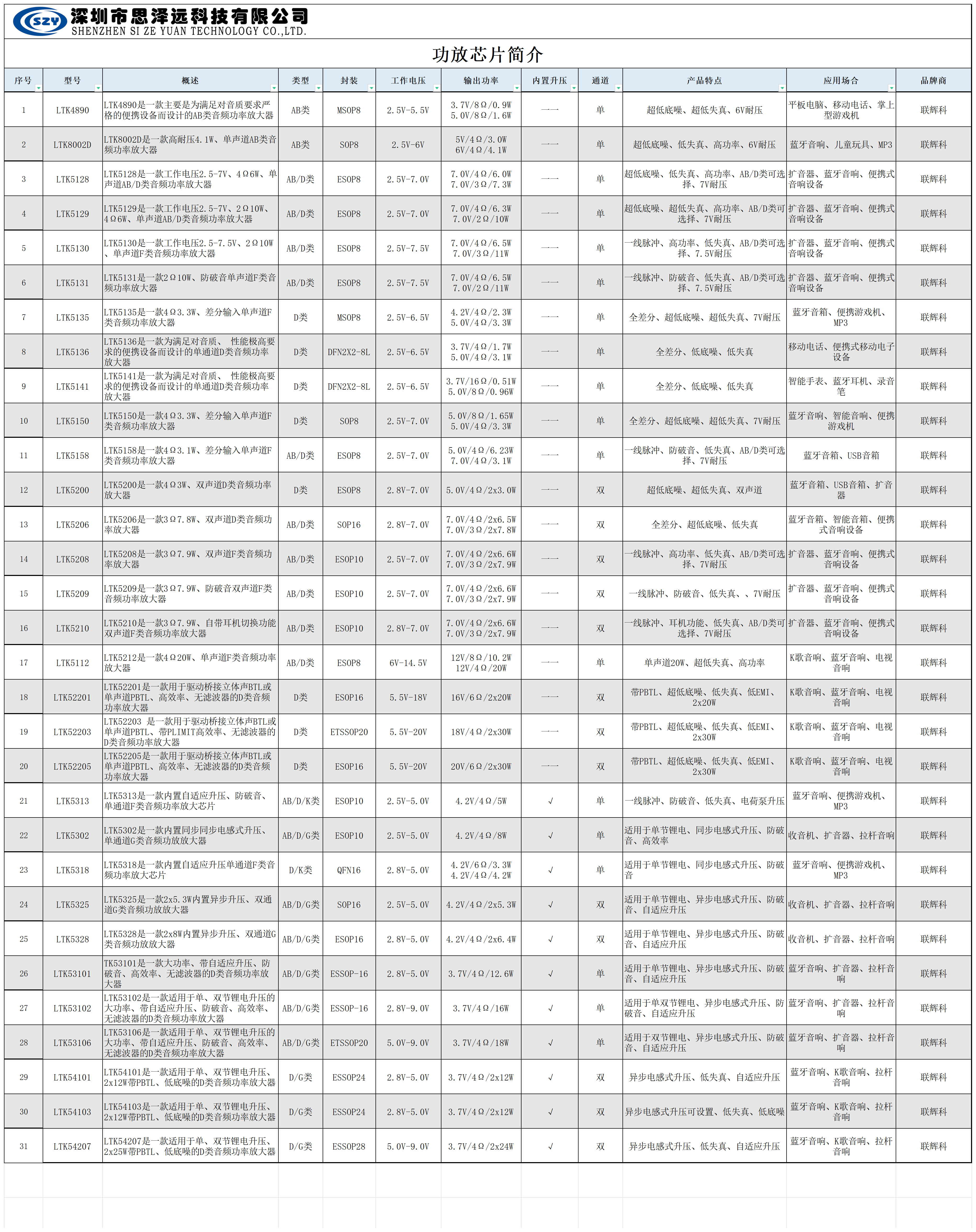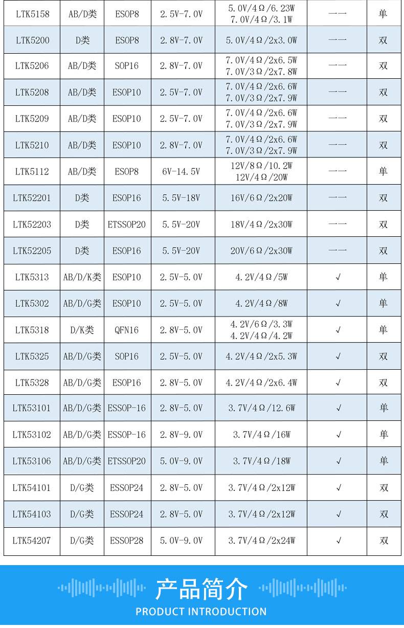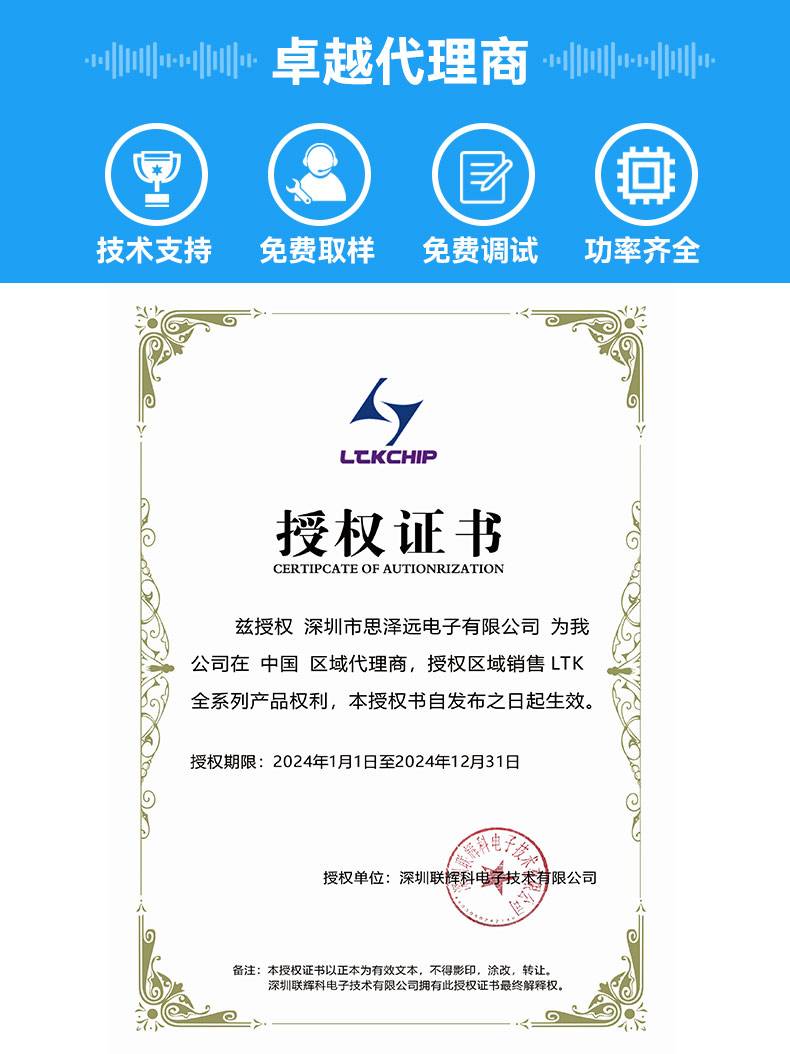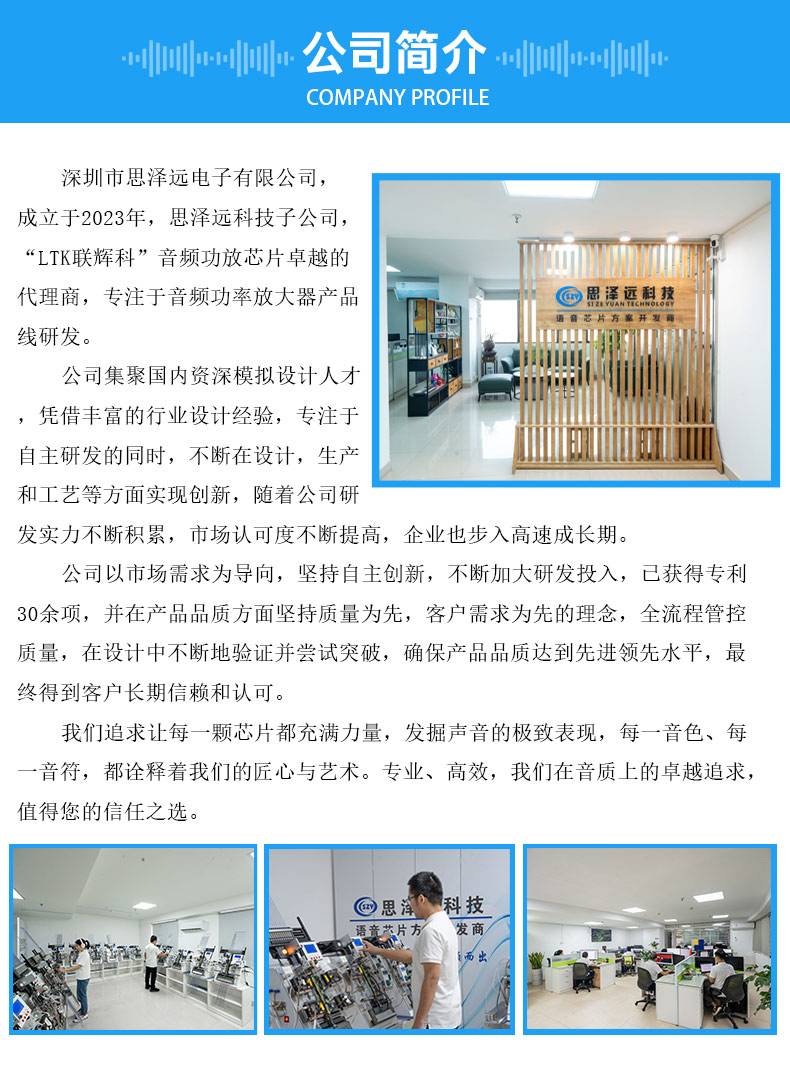 思泽远功放芯片厂家LTK54207功放ic双声道立体音频功率放大器