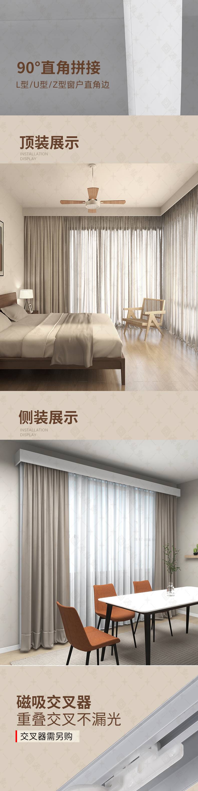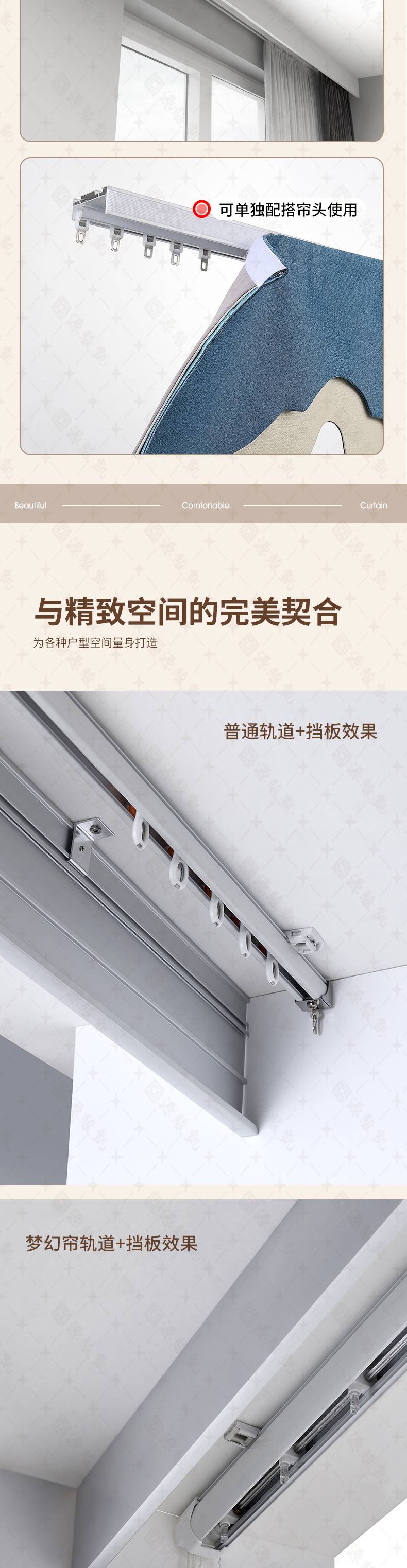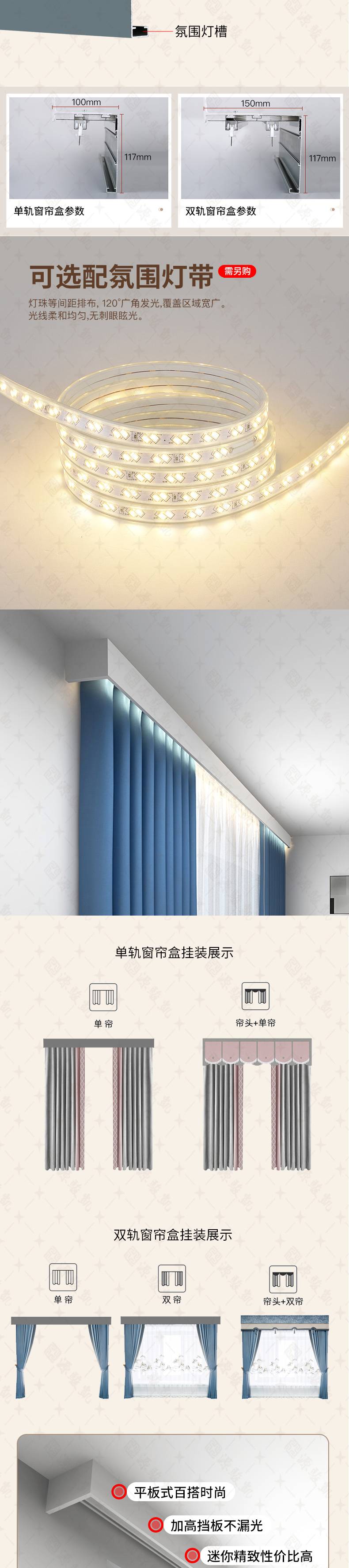 集成吊顶双轨 半遮光窗帘盒 一体滑轨 支持定制