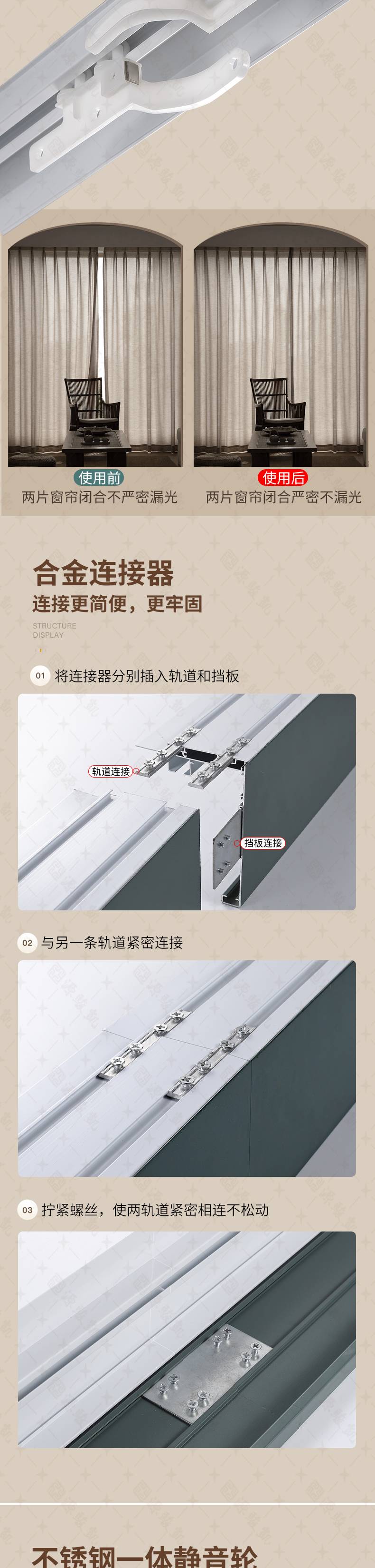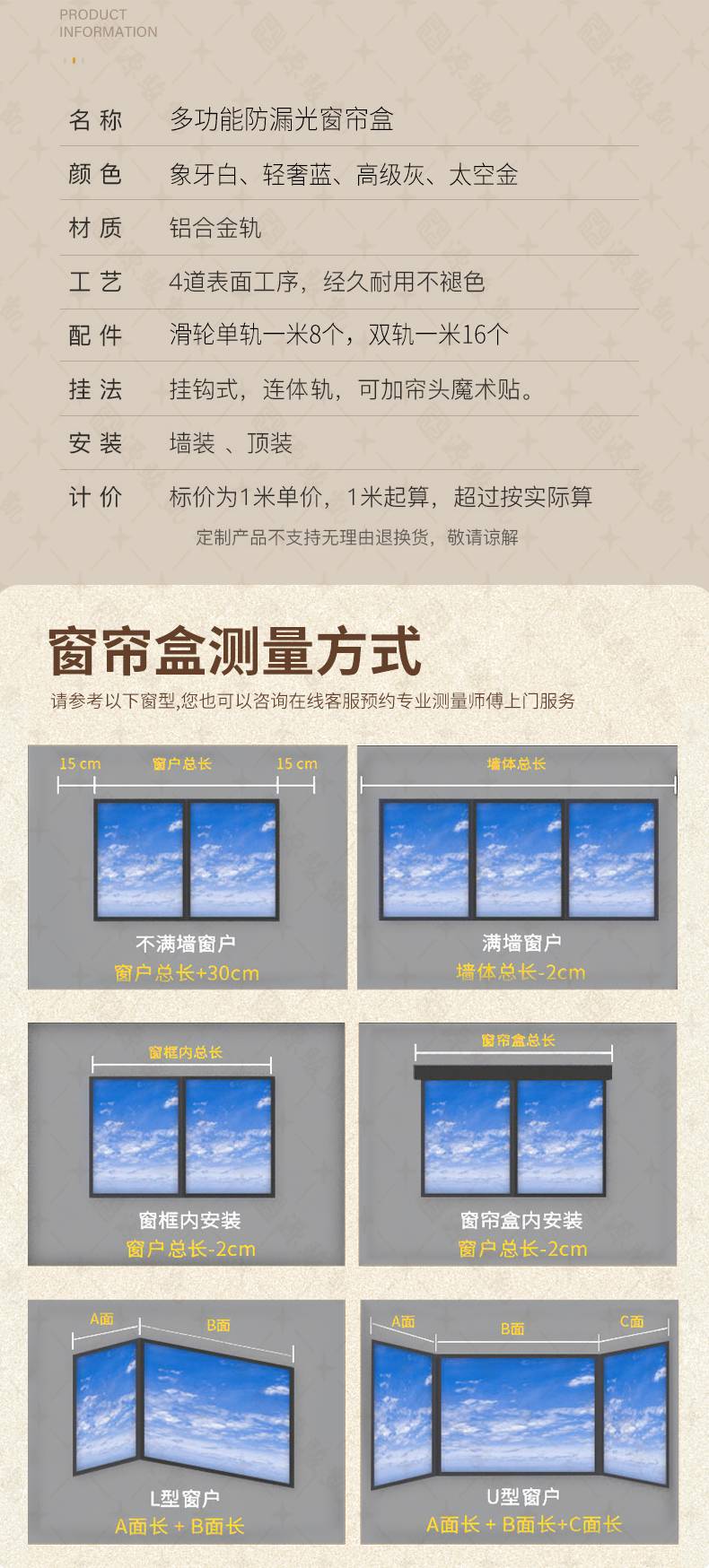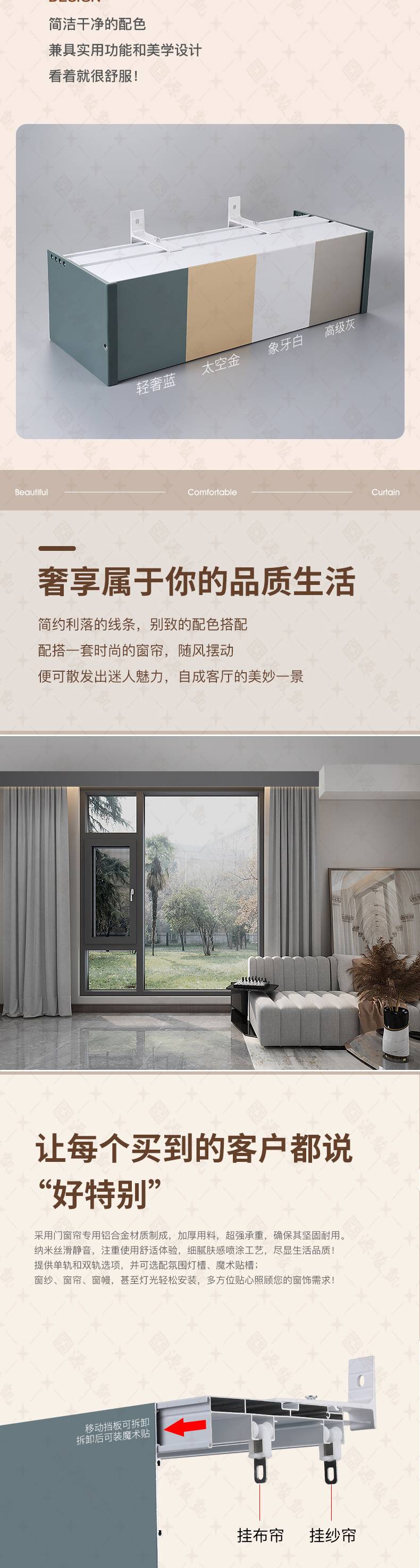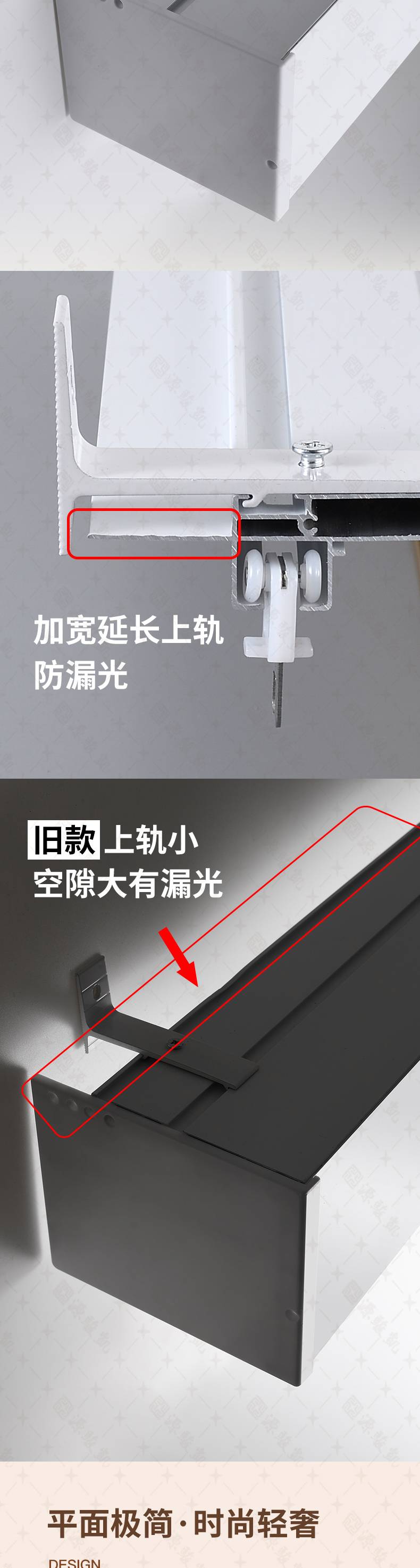 集成吊顶双轨 半遮光窗帘盒 一体滑轨 支持定制