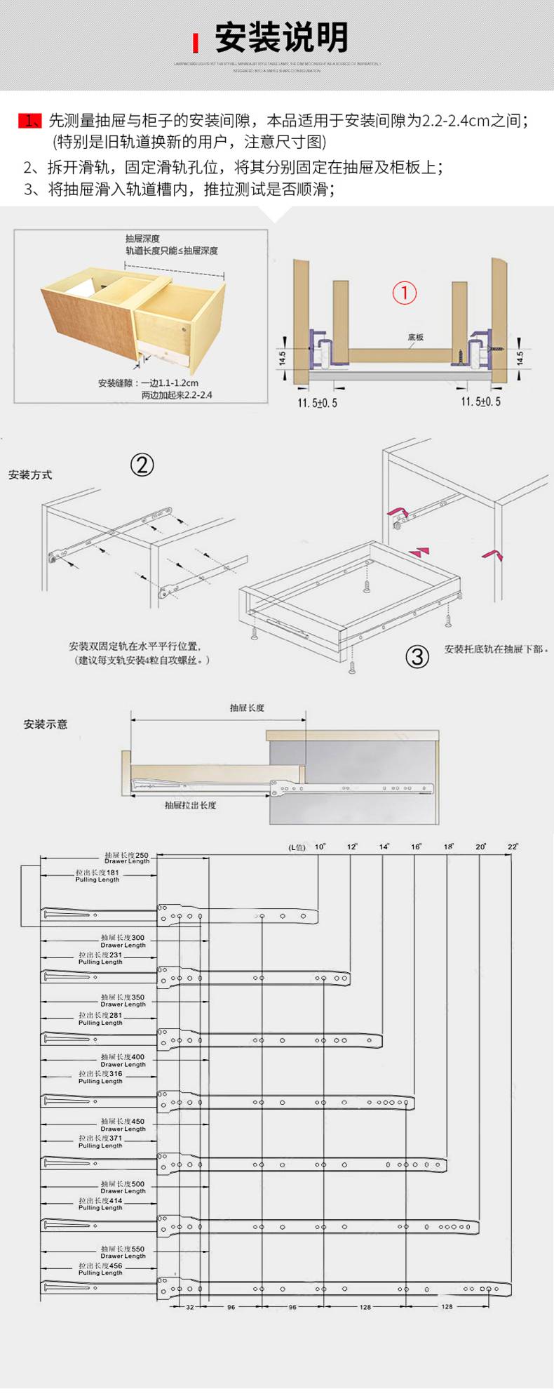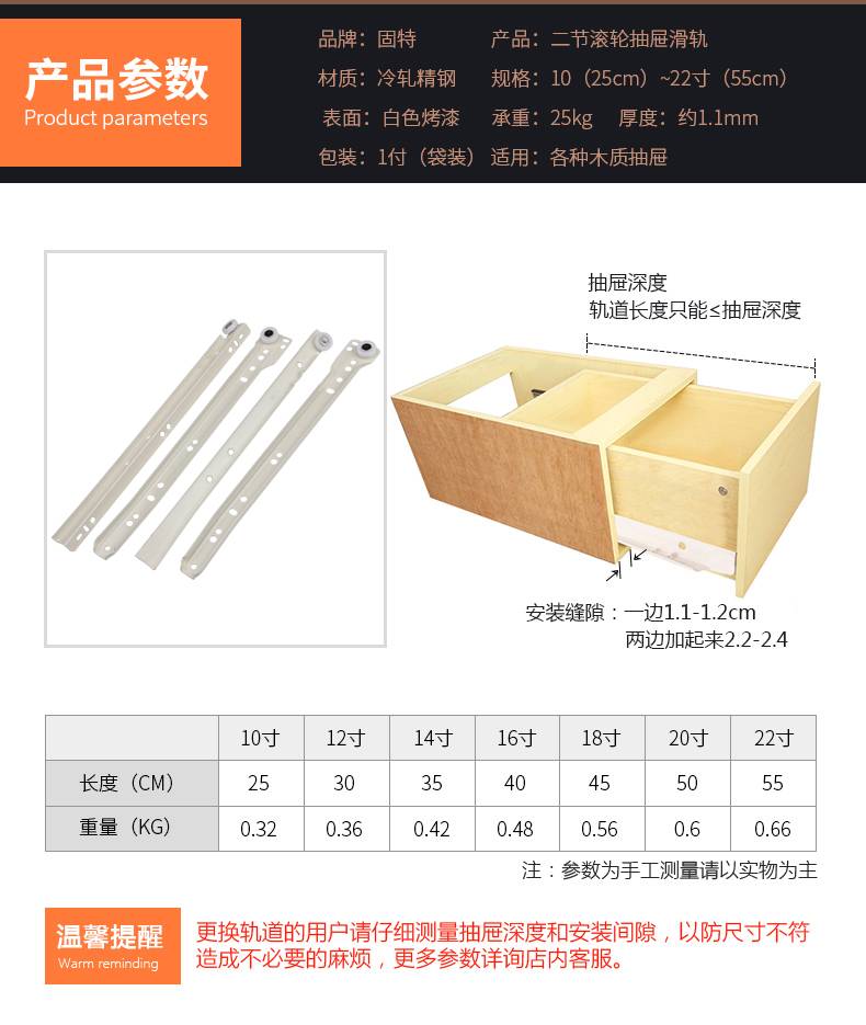 固特衣柜抽屉轨道滚轮滑轨托底滑道家用二节导轨键盘托架滑轨