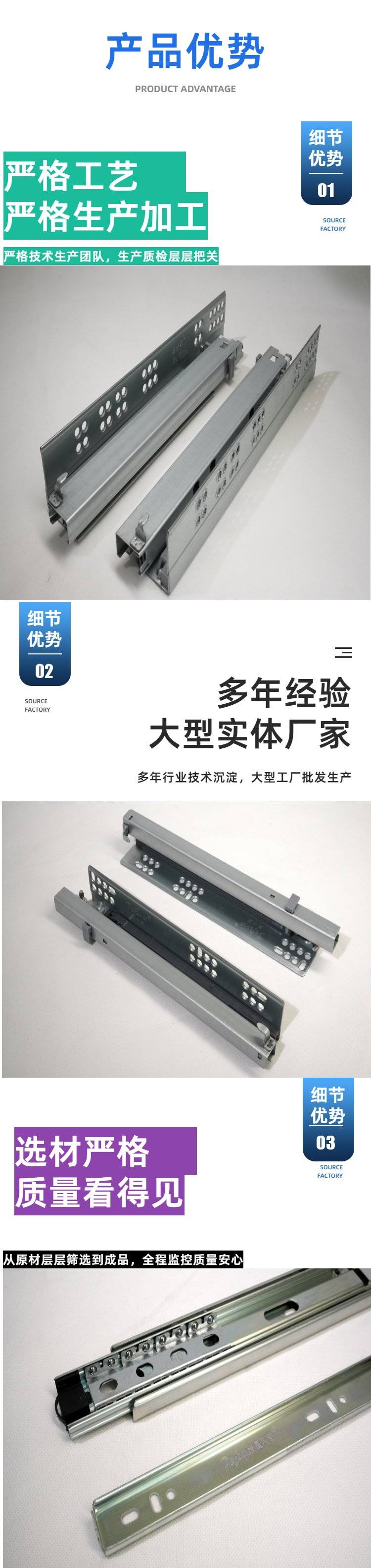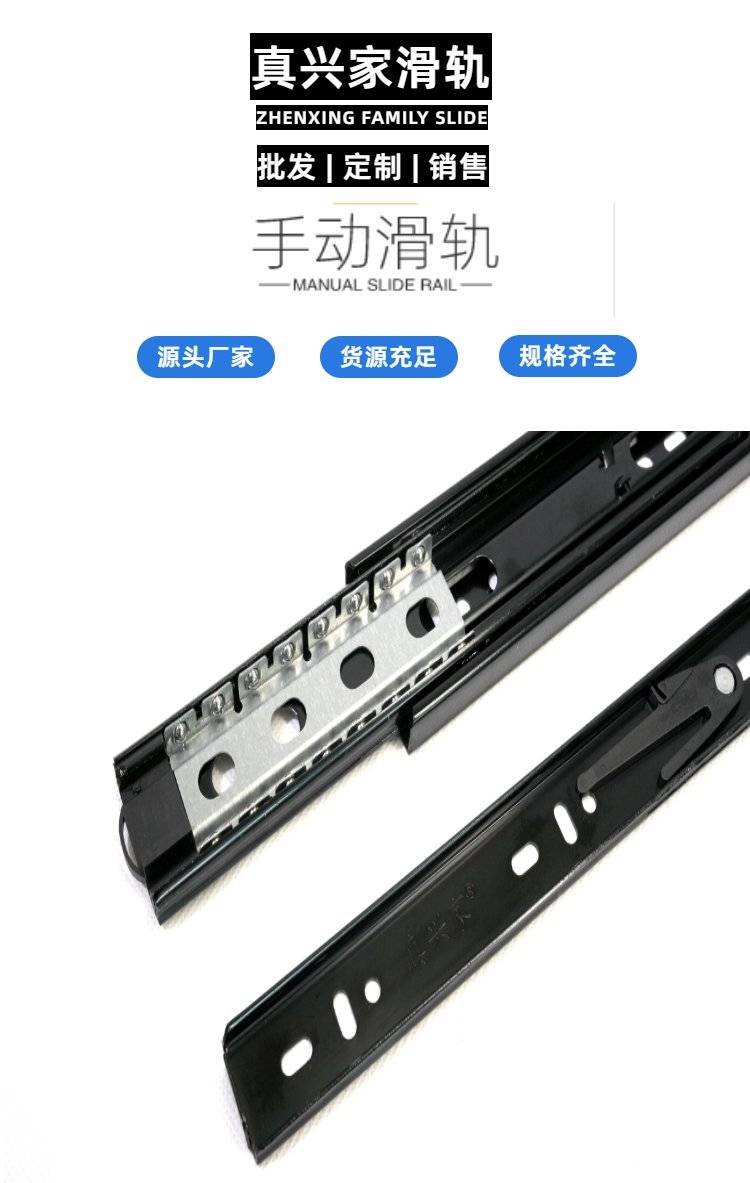 真兴家 两节隐藏式钢珠滑轨 严选钢材 橱柜抽屉门安装使用 源头工厂