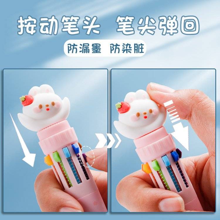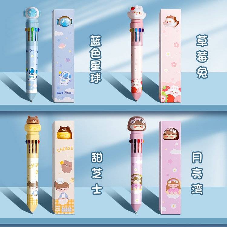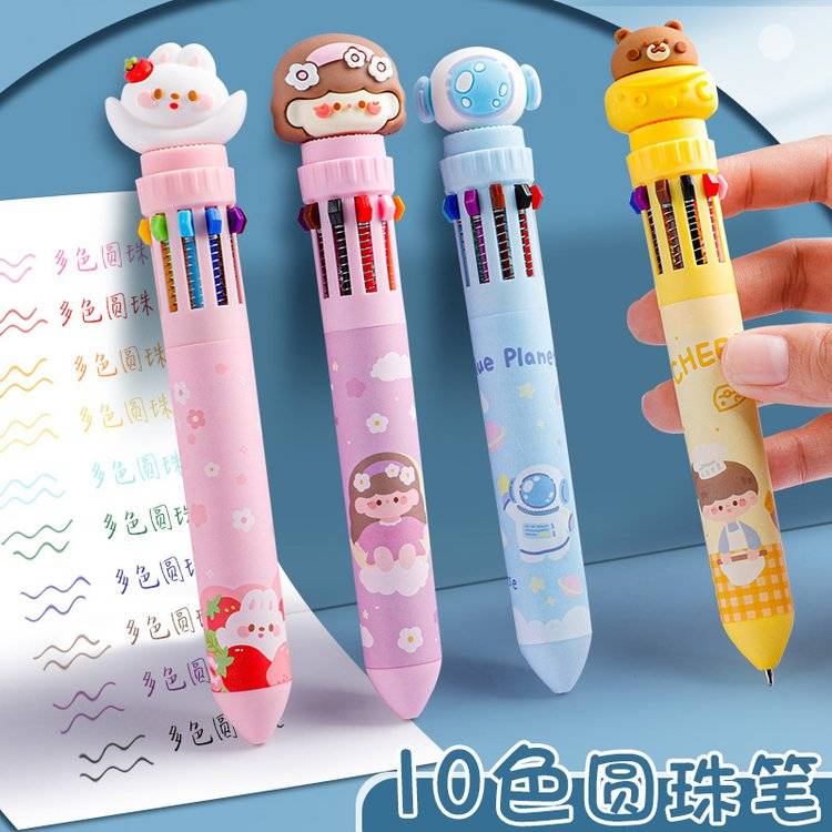 十色圆珠笔按动式高颜值可爱风卡通彩色多色笔一体油笔
