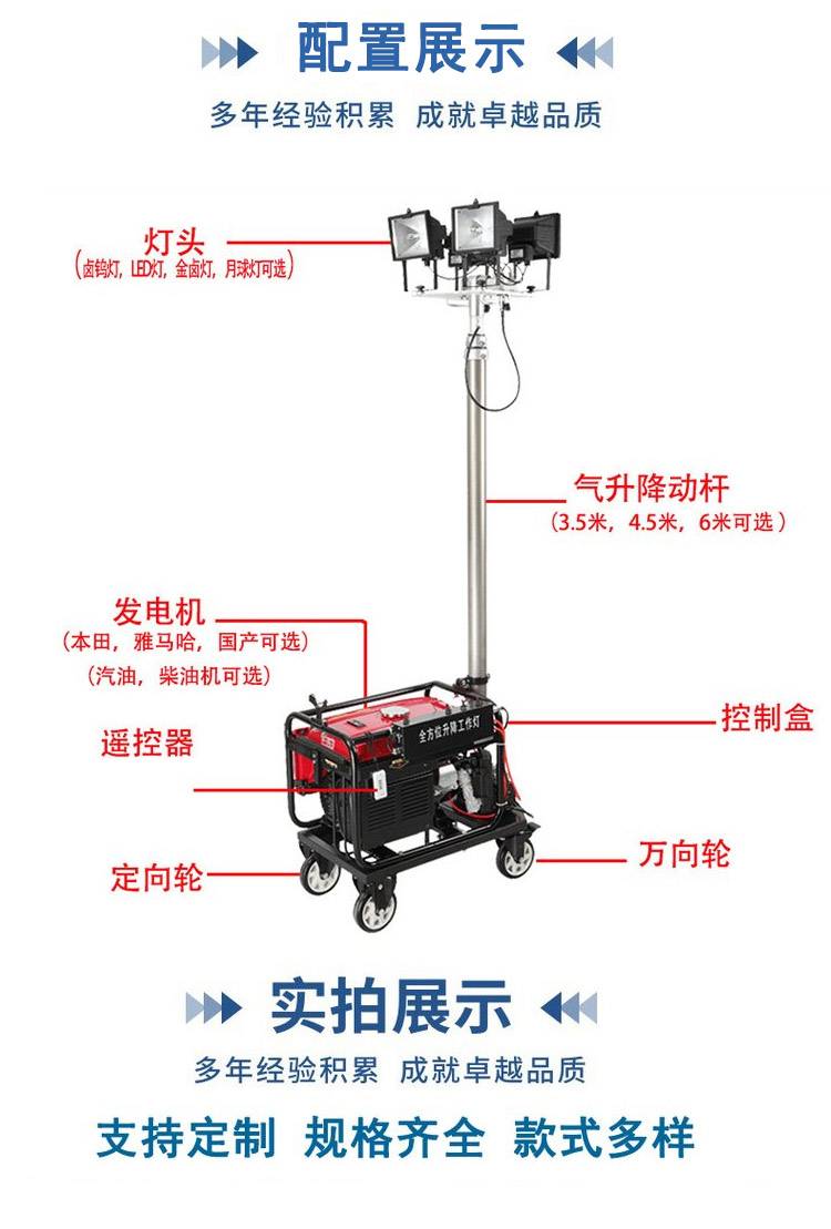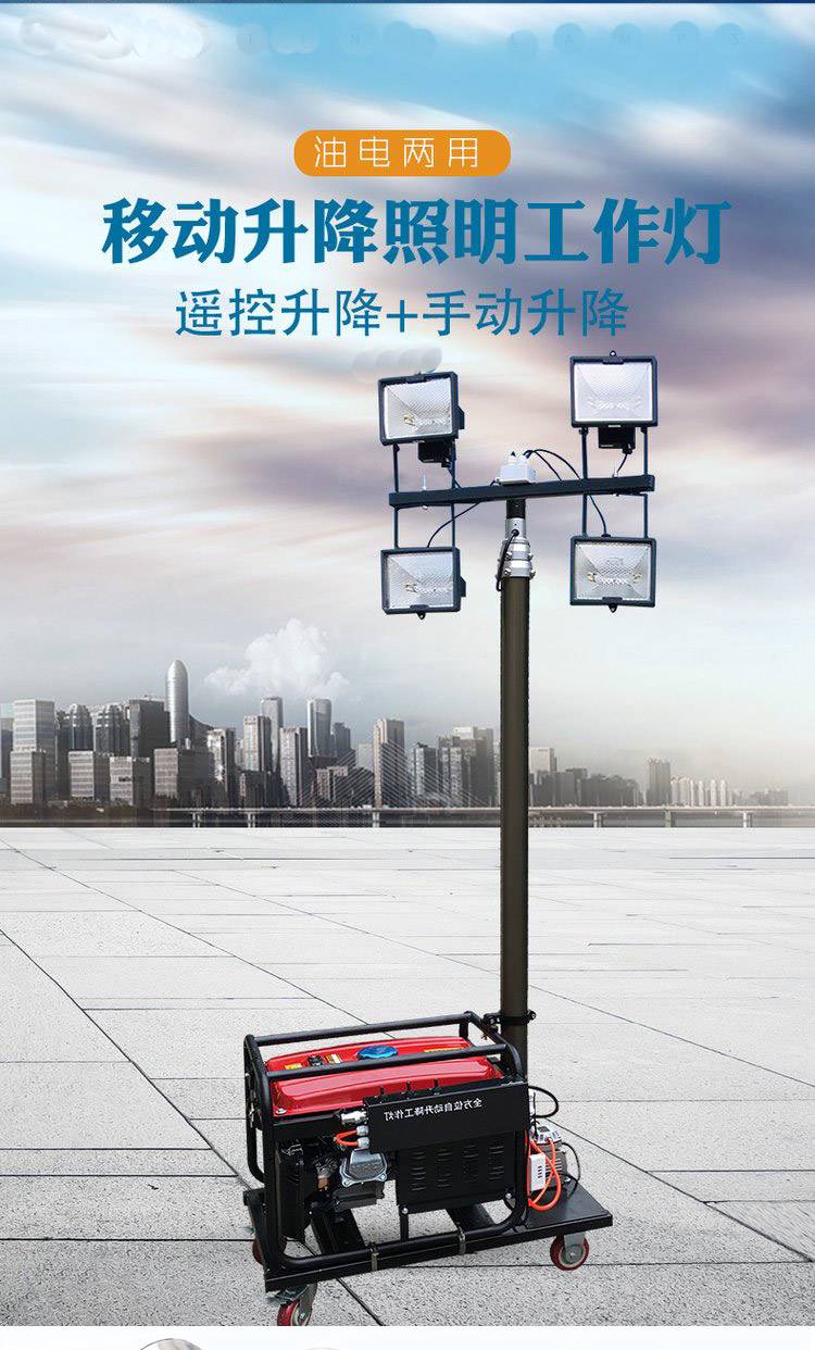 汽油自动户外移动照明灯 长度4.5米6米移动照明卤素灯组4X200W