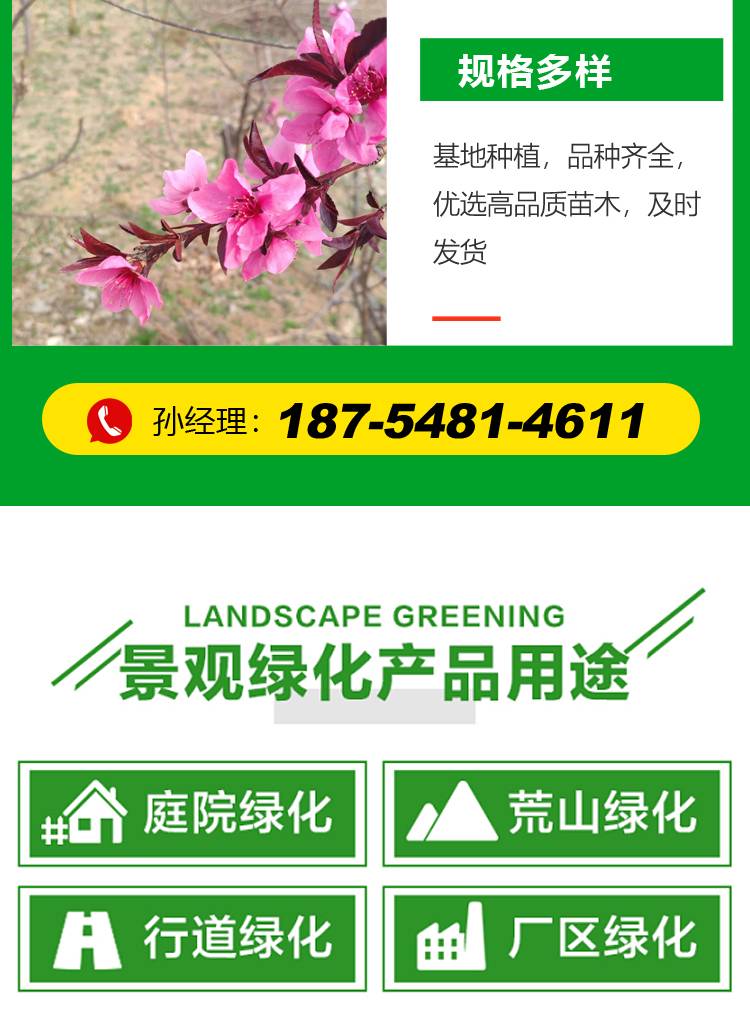 基地直供10-15公分红叶红花菊花碧桃红叶碧桃公园造景树现货速发