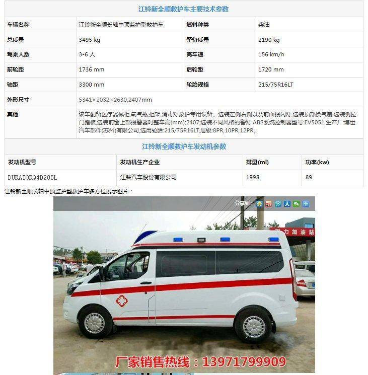 江铃新全顺长轴中顶监护型救护车内舱与驾驶中隔 前后分舱