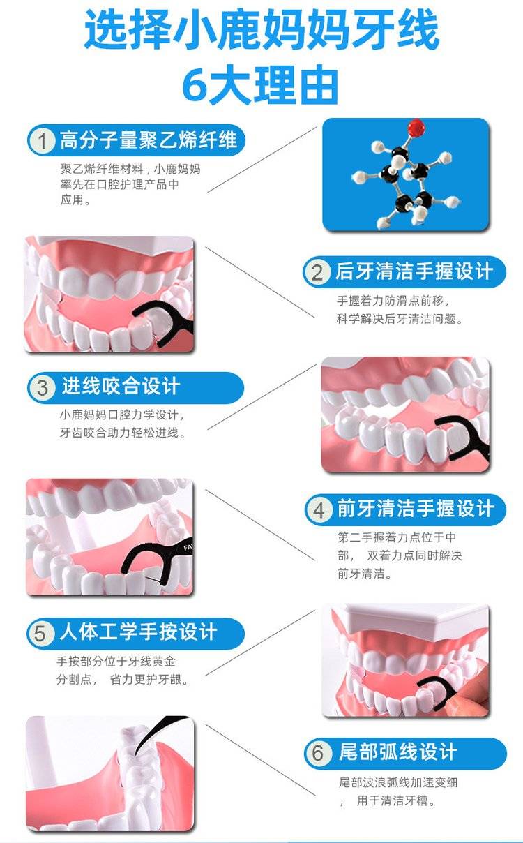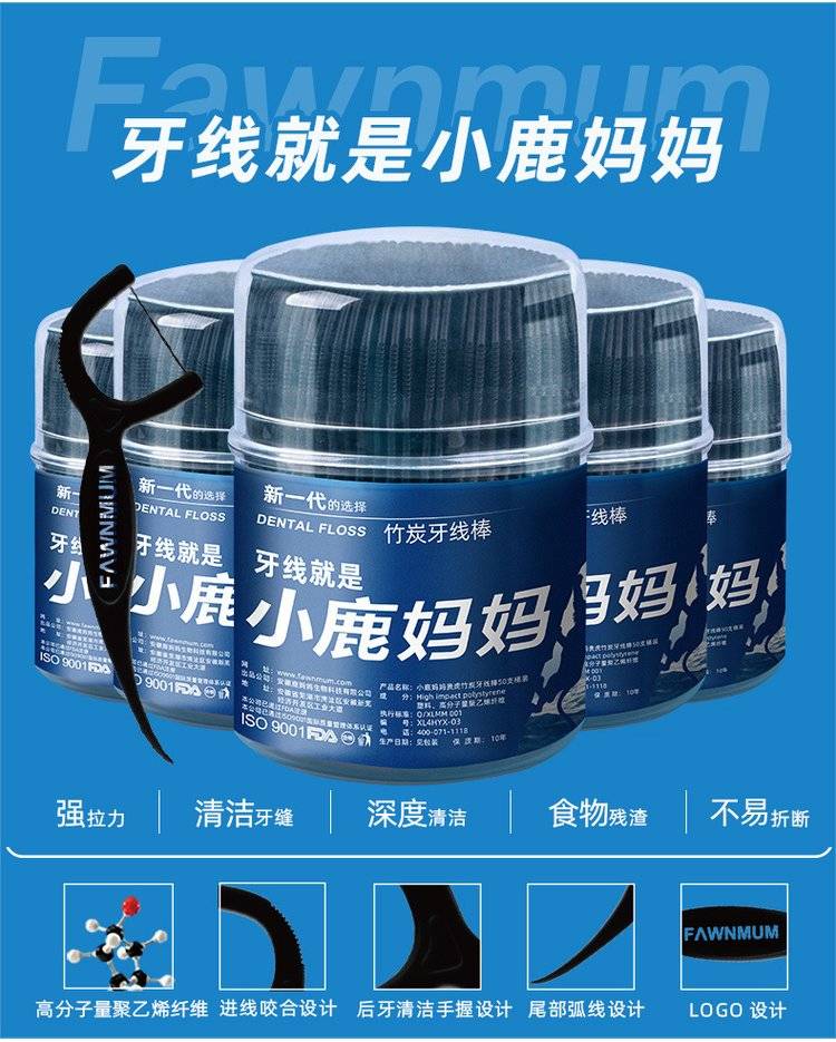 【企业合作】小鹿妈妈 洁齿护理牙线棒 超细牙签 家庭装 50支*3盒