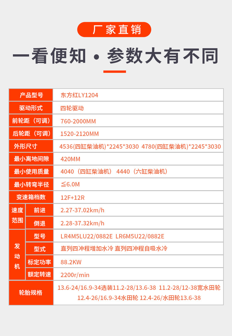 LX904东方红拖拉机 大桥国四补后提车档位12+12档位轮式 全密封前桥