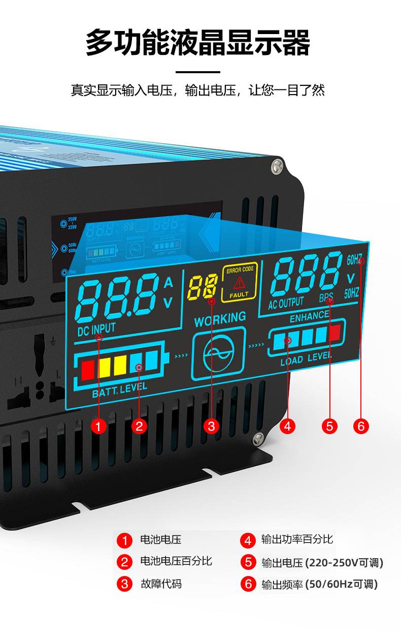 12v24v纯正弦波1kw2kw3kw智能车载家用大功率逆变器