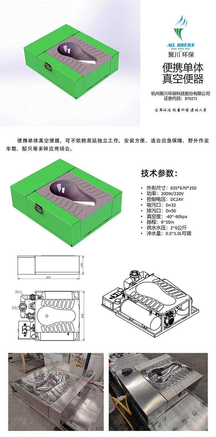 聚川环保 不锈钢真空蹲便器 火车用真空吸附厕具 节水型 小排污口