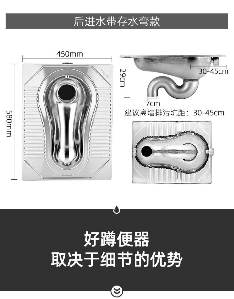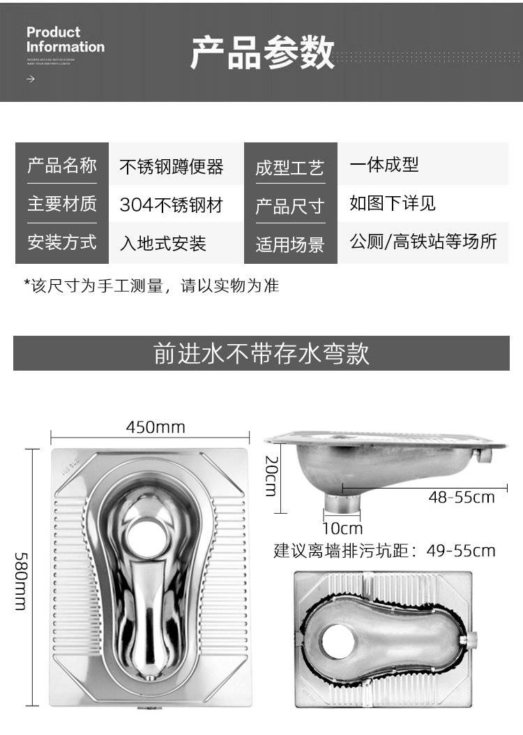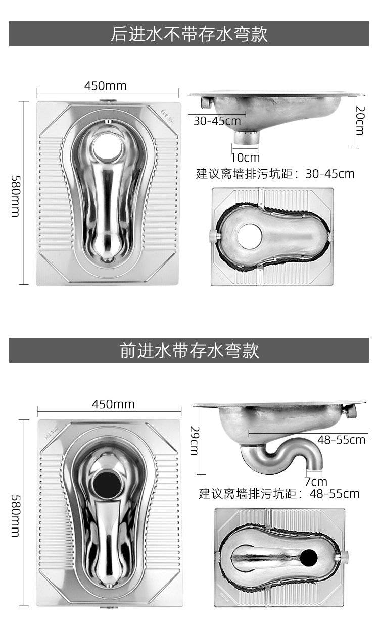304不锈钢蹲便器防臭酒吧各种场所公共厕所大便池蹲坑式水箱配套