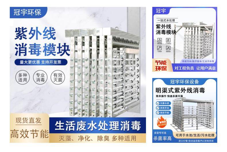 冠宇框架式紫外线消毒装置自动清洗型高强度杀菌灯污水厂选型