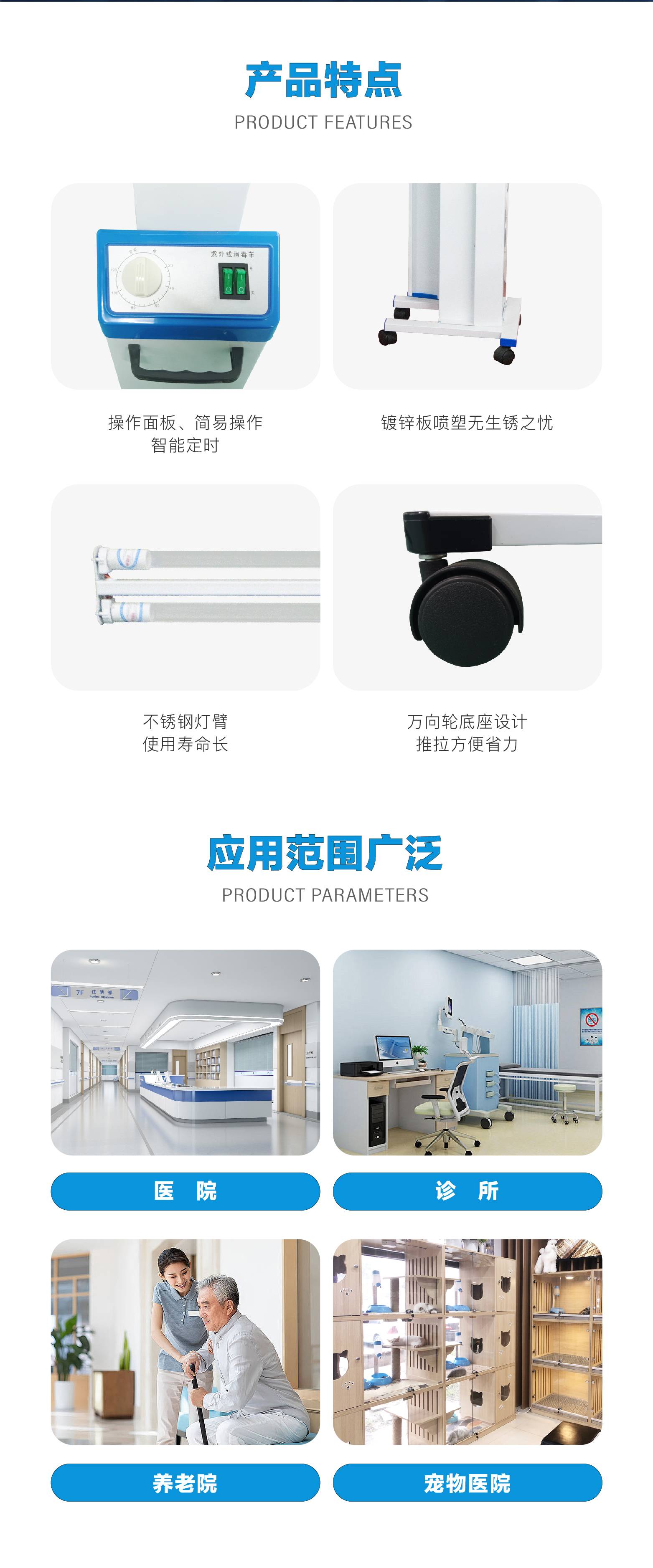佳田KADA 紫外线消毒车生产厂家 移动式 医院病房被褥物表照射杀菌灯