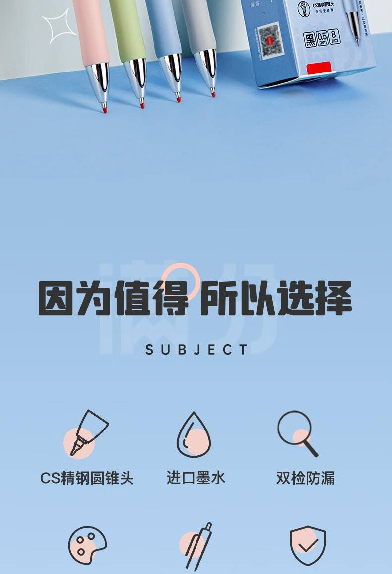 齐心刷题笔专用按动中性笔笔头中0.5黑色(CS笔尖)16支