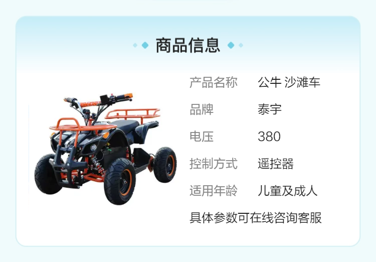 亲子双座越野小公牛 加厚材质防磨损 儿童沙滩车定制设备厂家