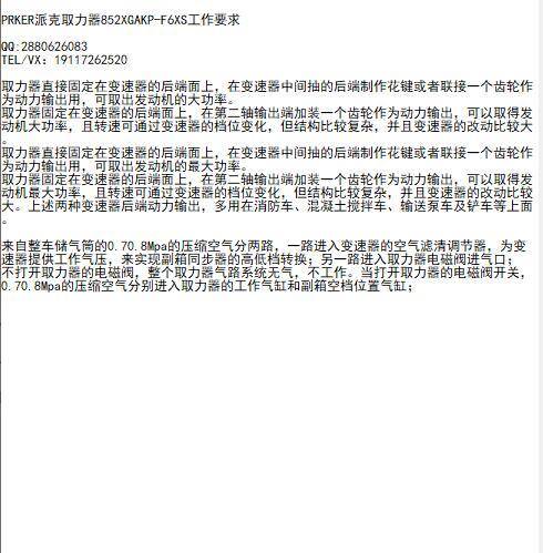 讲述PRKER派克取力器852XGAKP-F6XS的工作要求