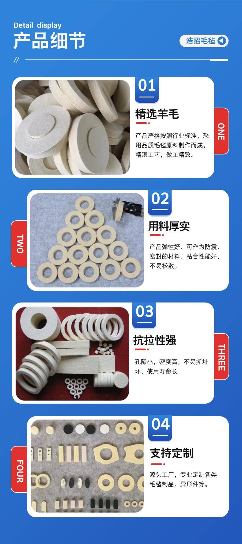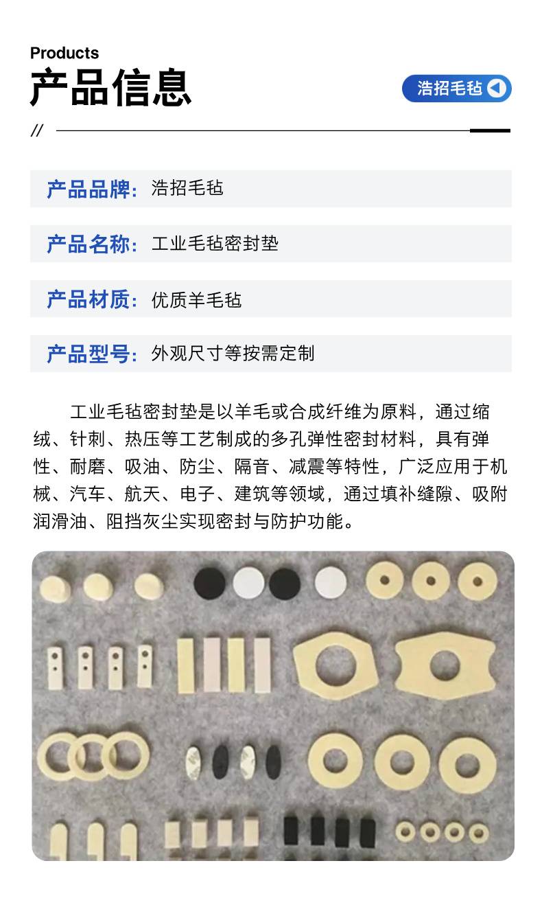 浩招 机械设备毛毡垫片密封件 精心选材 精工细作