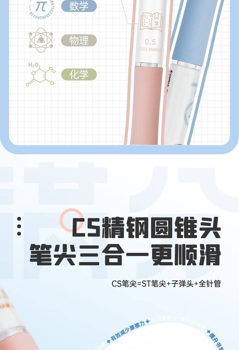 齐心刷题笔专用按动中性笔笔头中0.5黑色(CS笔尖)16支