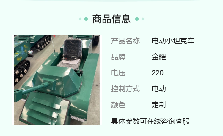 金耀定制款电动小坦克车 遥控驾驶儿童玩具车 单人公园履带车