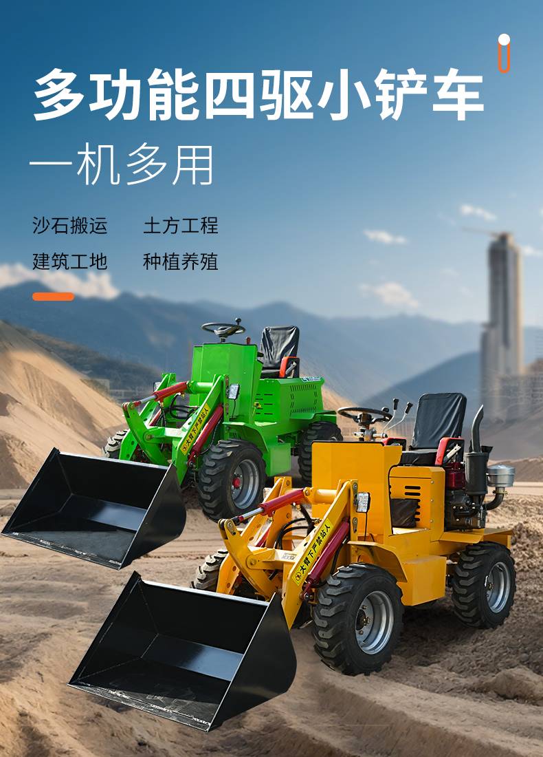 柴油电动四驱小铲车建筑工程农用小型装载机