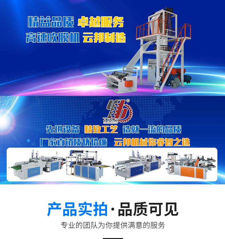 2222云邦机械 超薄垃圾袋吹膜机 连卷八折SJ50-600加热功率12kw
