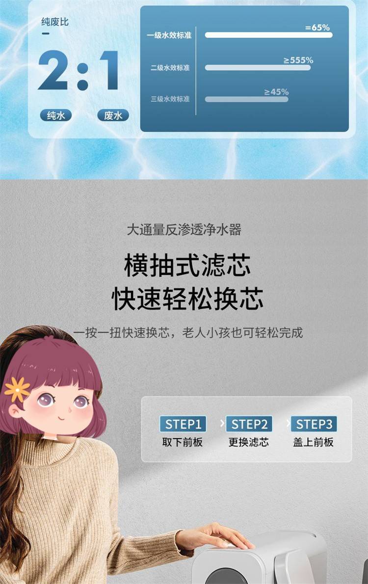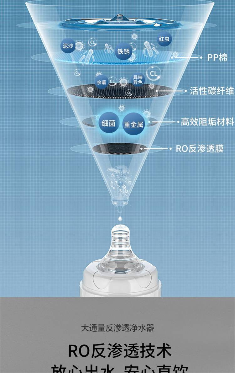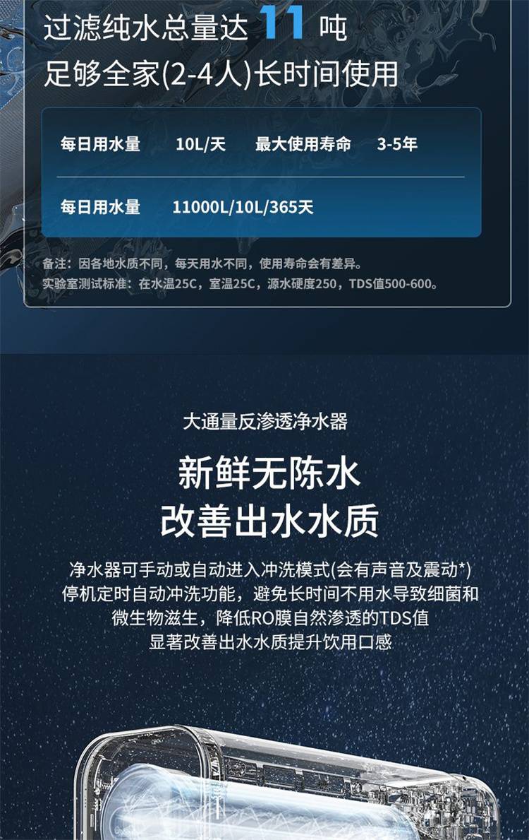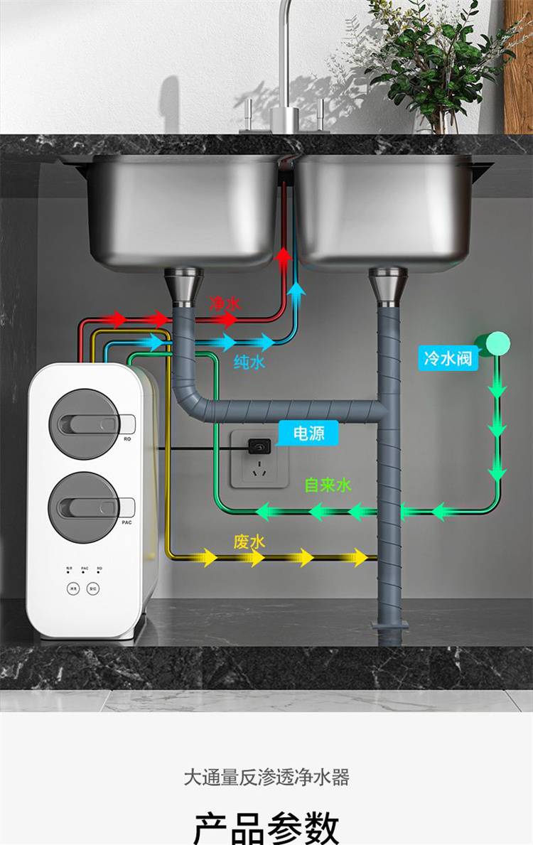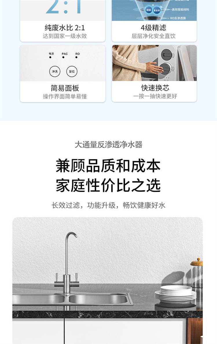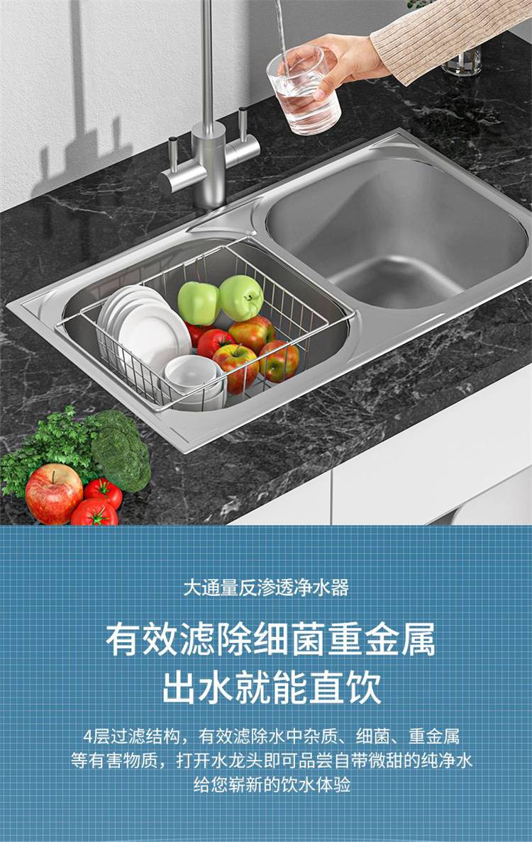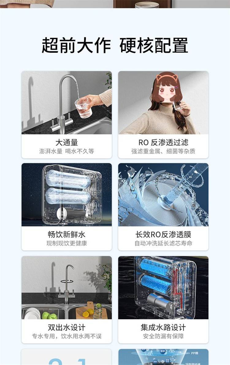 家用净水器 大流量过滤 反渗透净水机800G双核聚成水量