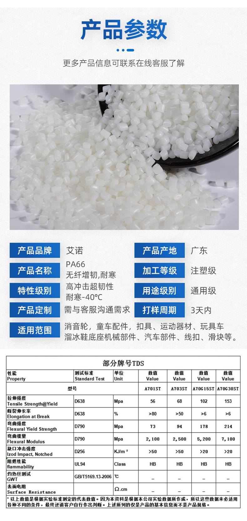 通用级耐寒改性pa66尼龙料 易脱模PA66无纤增韧 连接器尼龙原料供应