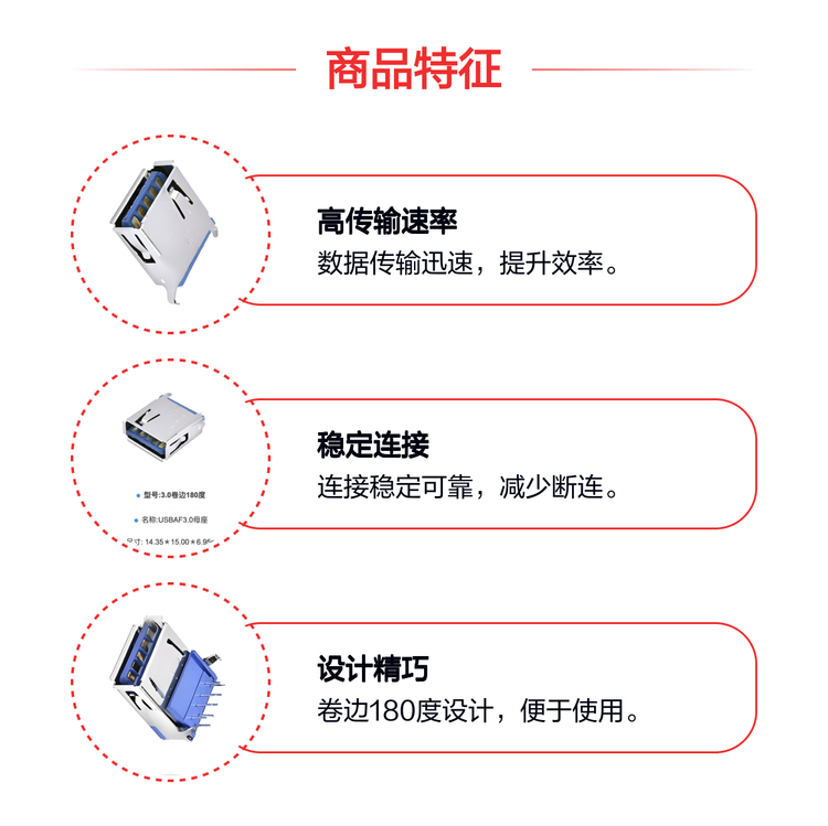 Type-C公头USB连接器 3.0卷边180度设计 高传输速率稳定连接