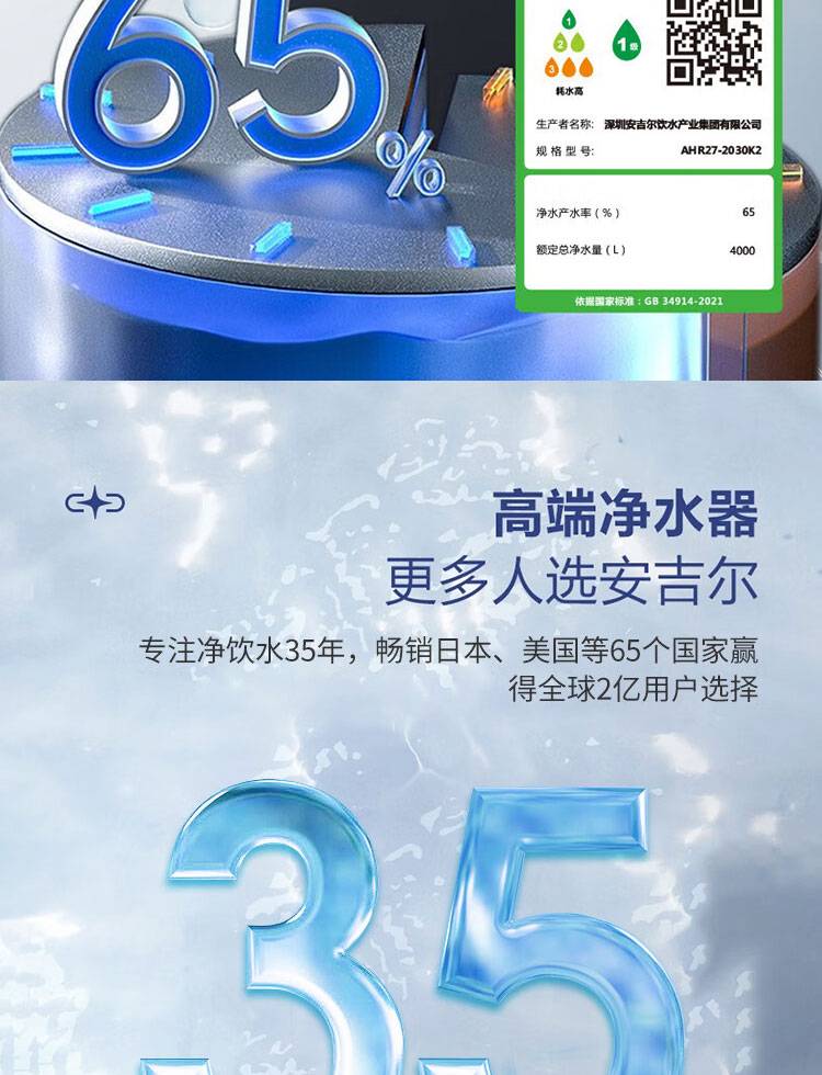 安吉尔家用净水器直饮 家用机A4反渗透净水机 原装进口
