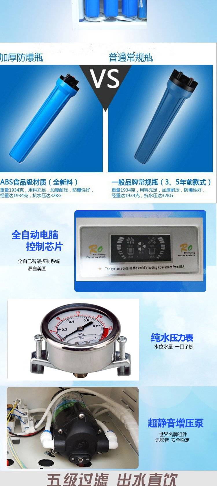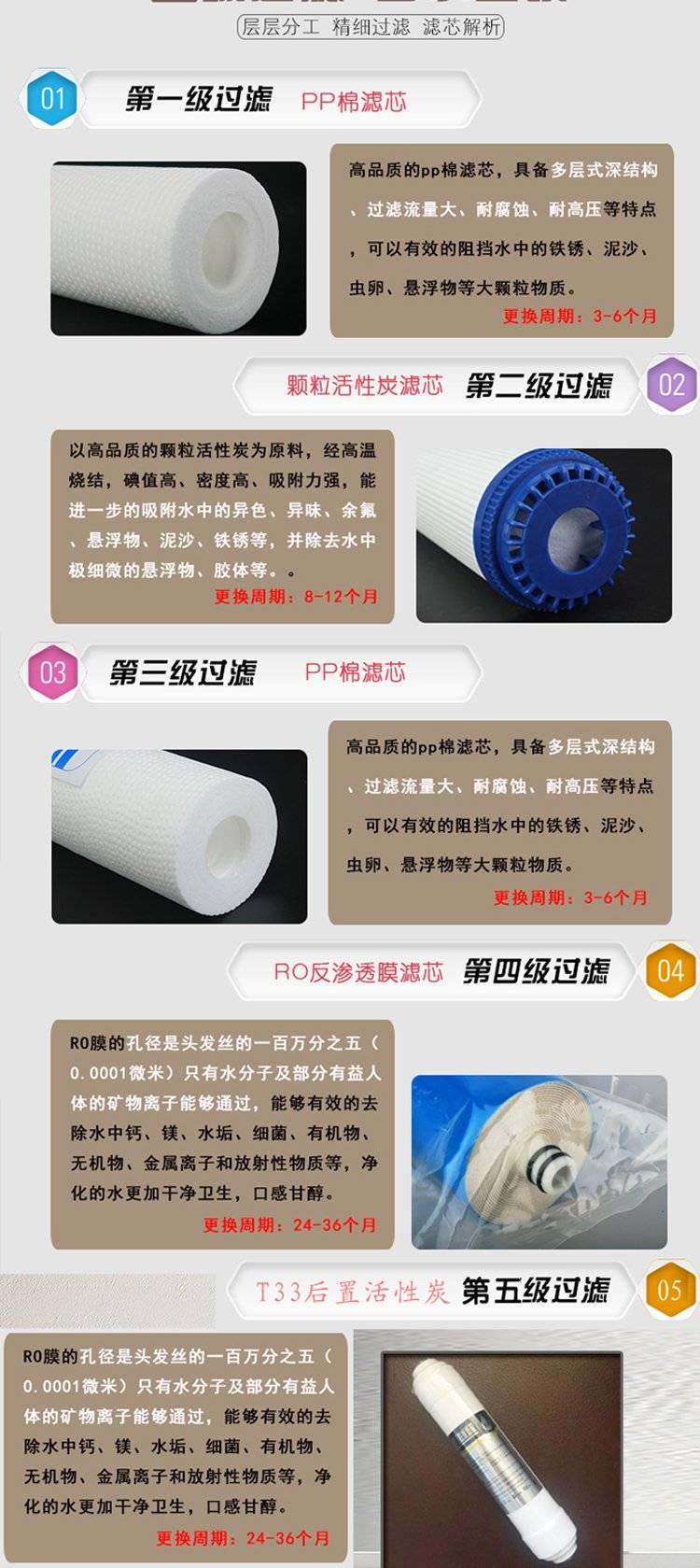 秒顺 家用净水器RO反渗透纯水机3+2通用滤芯配置