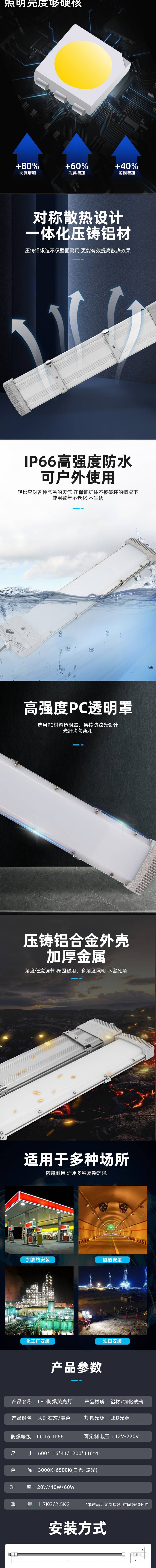 20W40W60w防爆洁净荧光灯led灯BAY96隔爆型日光灯