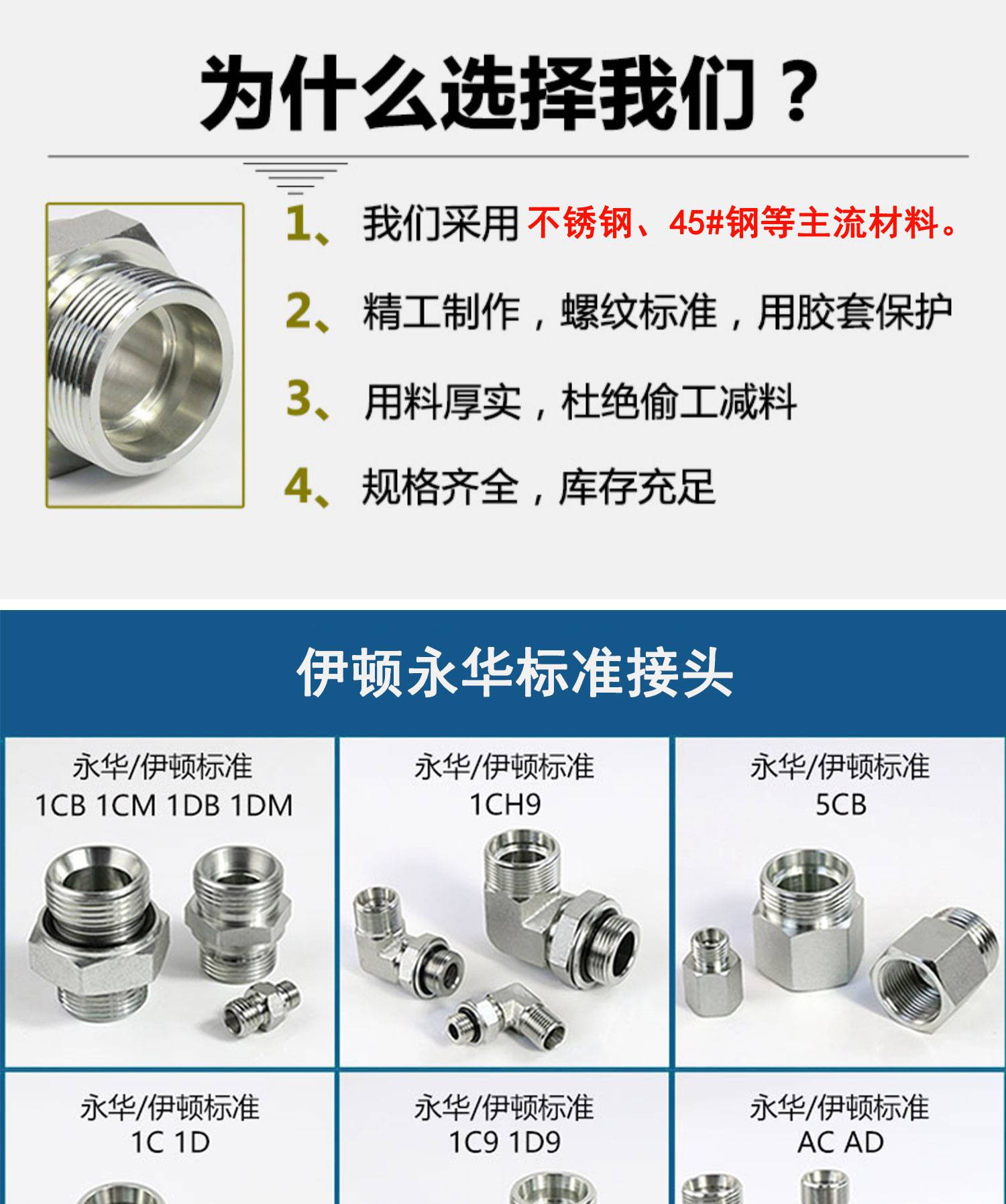 304不锈钢伊顿永华标准液压接头 直通对丝弯头厂家定制加工生产