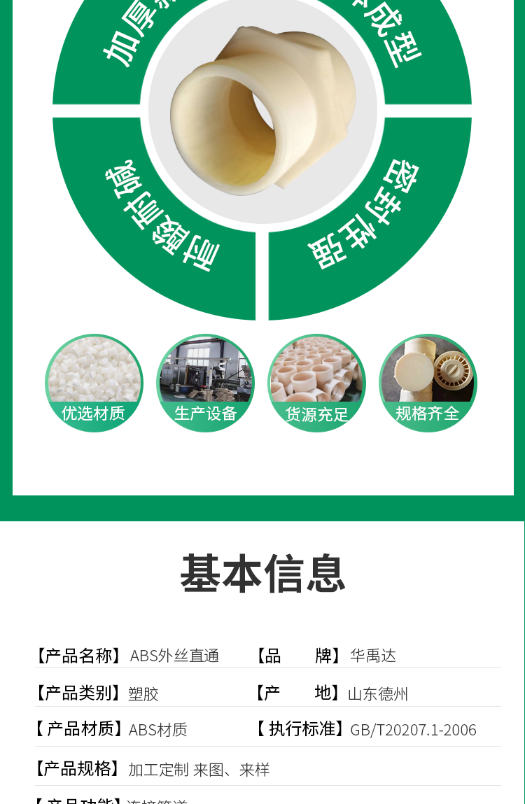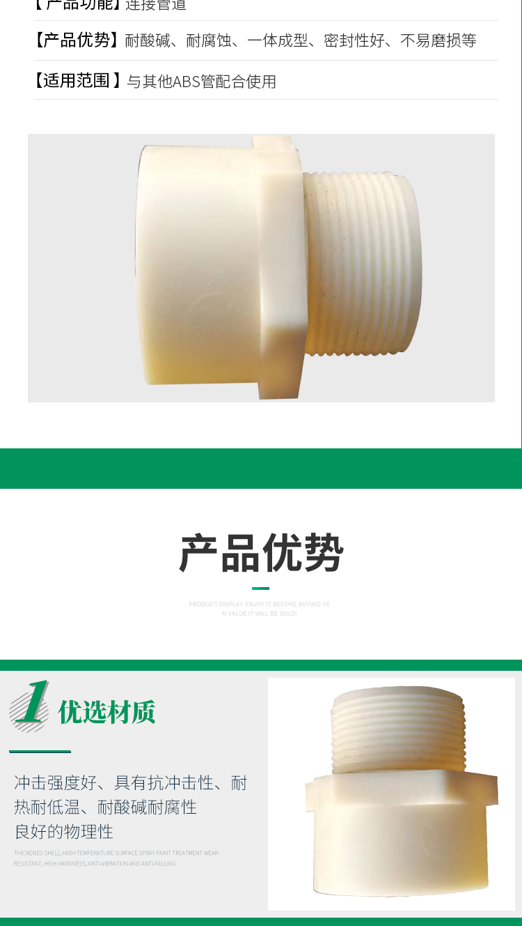abs外丝接头抗冲击性耐热耐低温耐腐蚀抗酸碱ABS直通