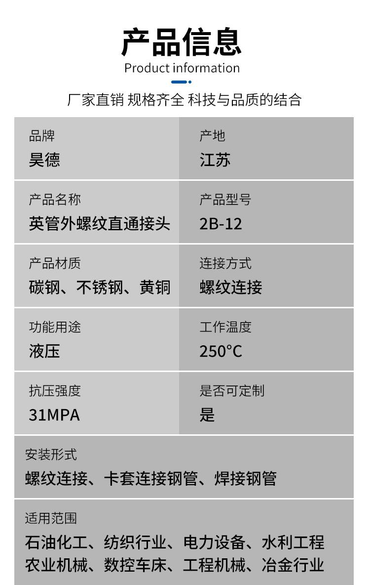 昊德液压 英管外螺纹直通接头 用料实在多种规格可选支持定制