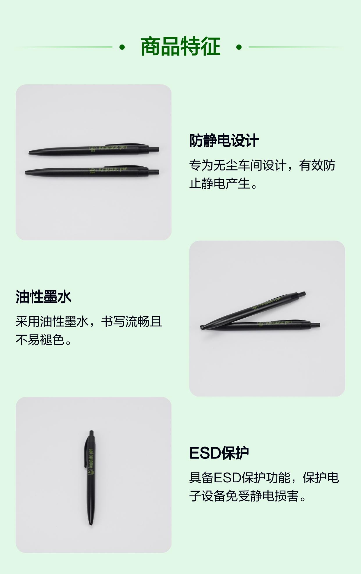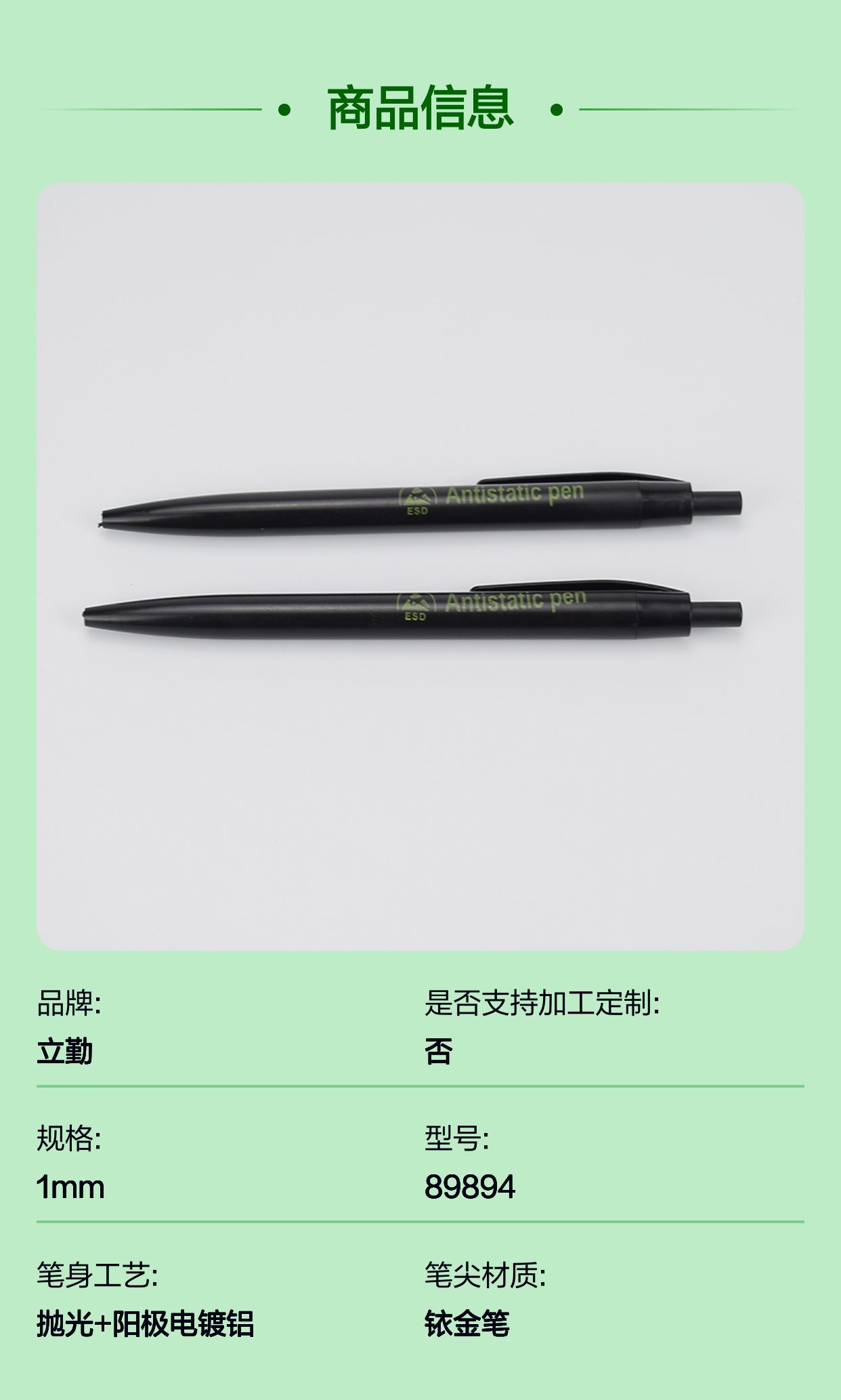 厂家防静电圆珠笔 无尘车间专用ESD黑色油性笔 书写流畅