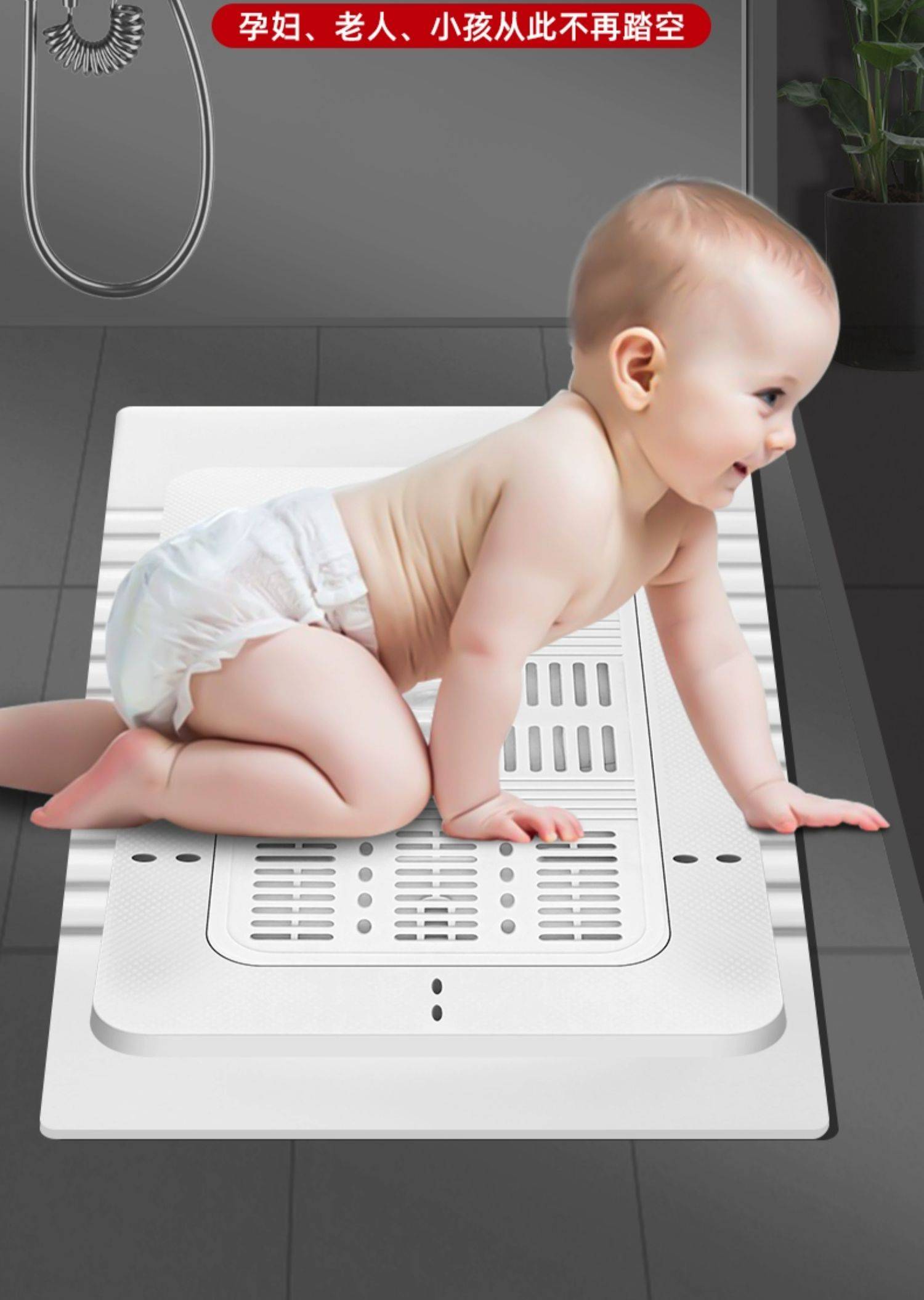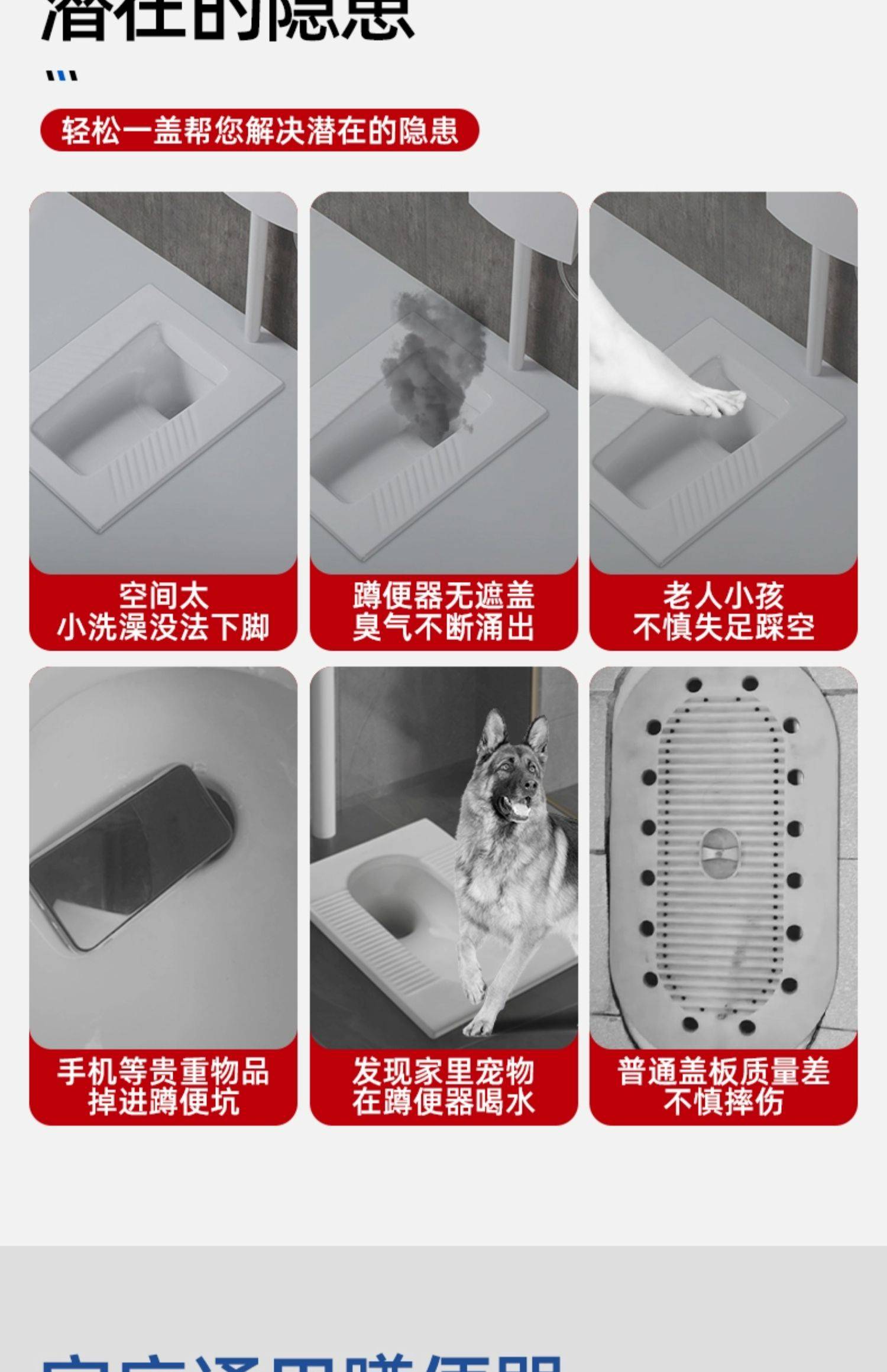 蹲坑盖板洗澡防滑厕所蹲便器防臭防堵遮盖挡板卫生间便池一体通用