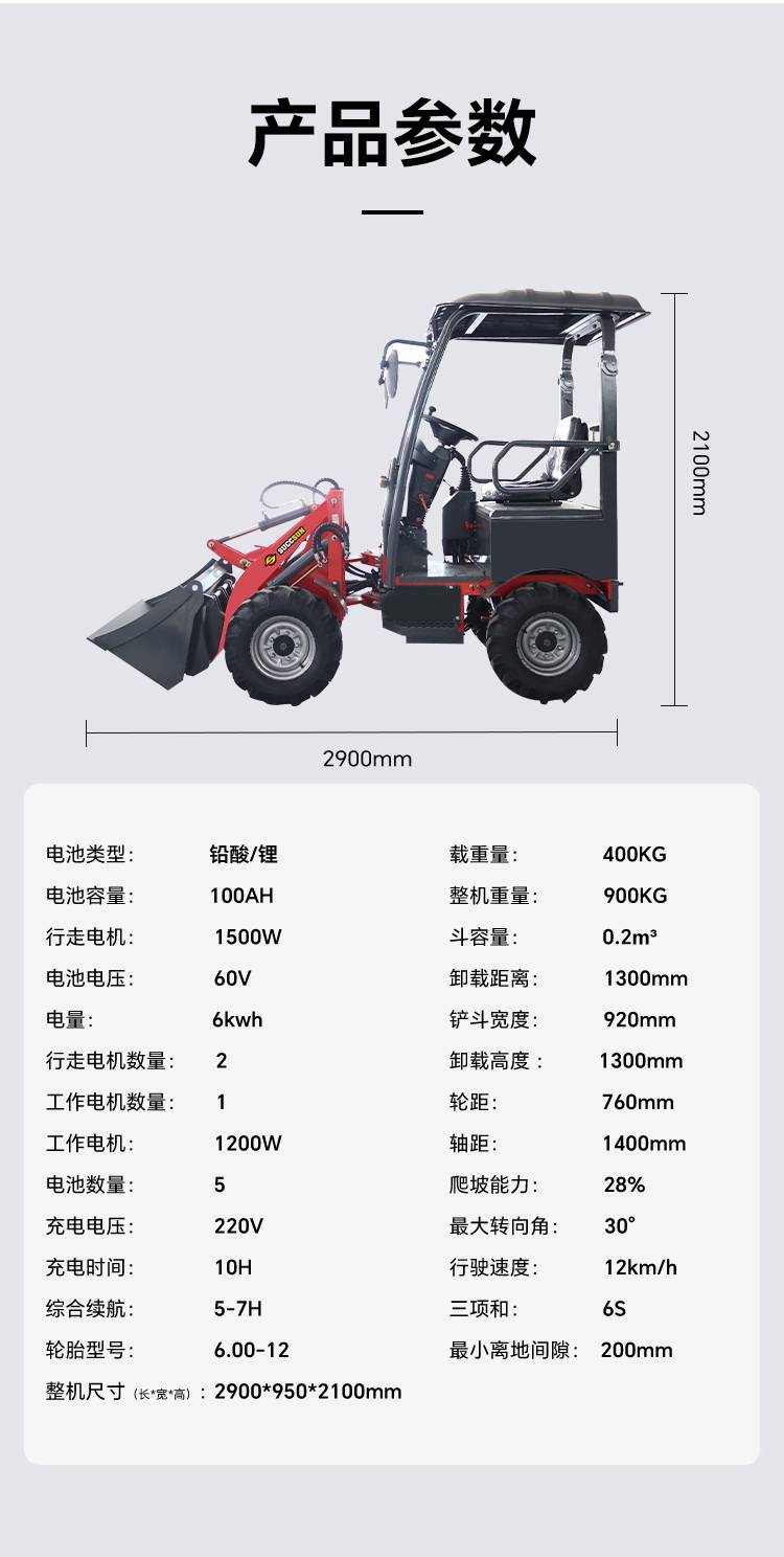 小型电动装载机 新能源铲车快换多种属具节能环保型无噪音