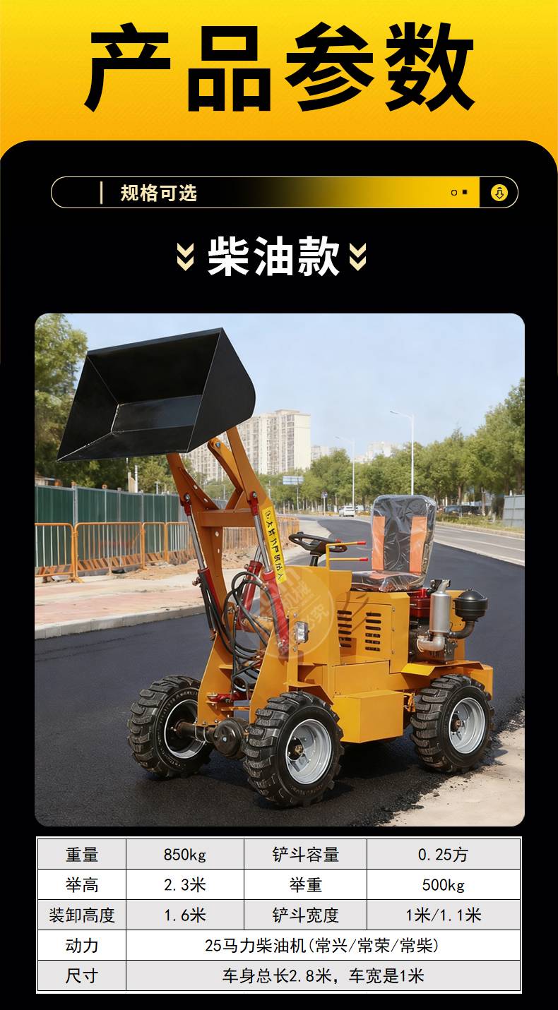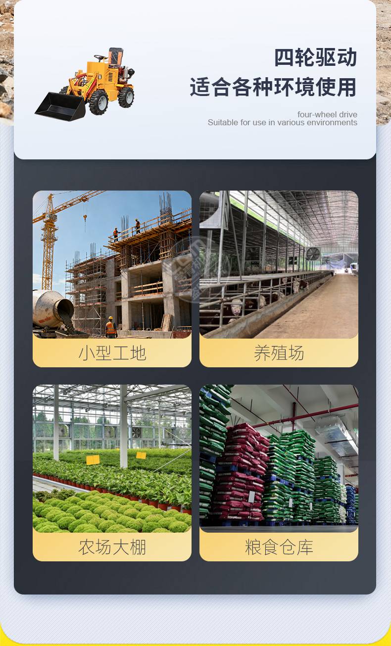 柴油小铲车装土机四驱建筑工地推土车养殖厂清粪车农用电动装载机