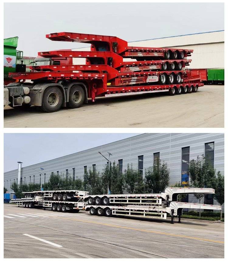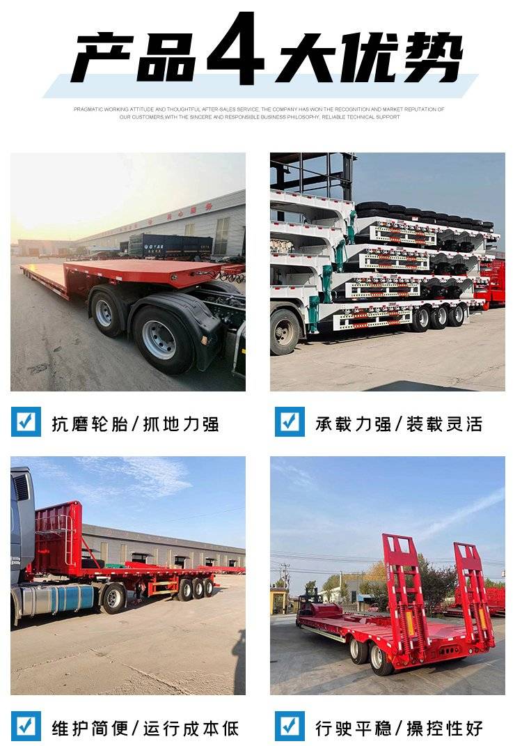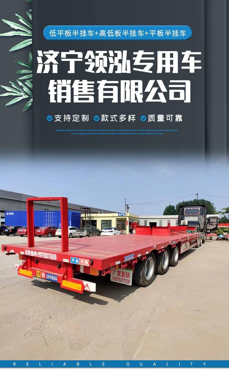 低平板运输半挂车 11米钩机板运输车 液压爬梯挂车