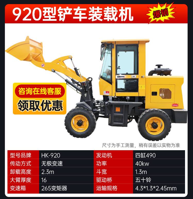 小型电动装载机工程四驱柴油铲车铲沙灰推土抓草机