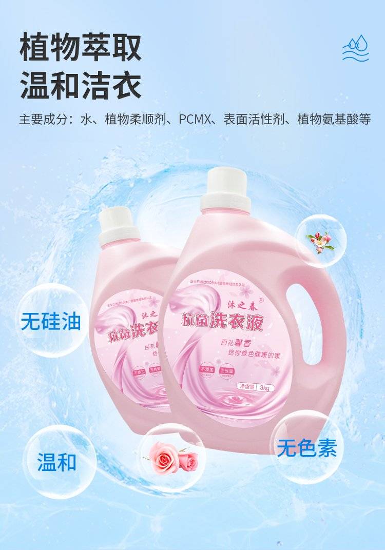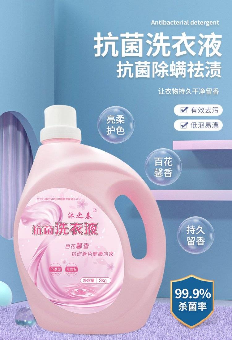 抗菌率99.9%除螨洗衣液3kg卫生防霉深层去渍温和低泡省心省水节能