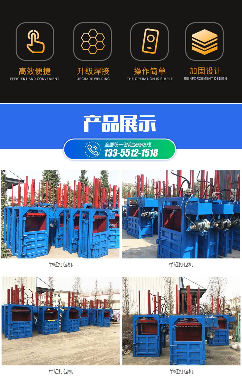 222220吨压力塑料膜打包机 吸塑膜打捆机 半自动废膜压缩机型号