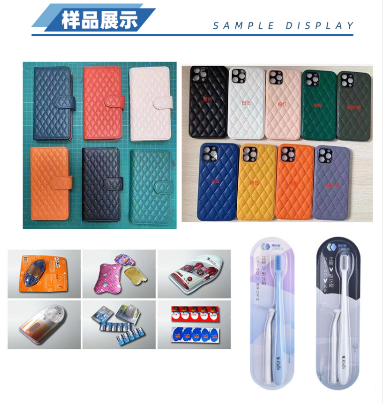 手机皮套、双面吸塑泡壳、CD袋折合压线、手表带等等