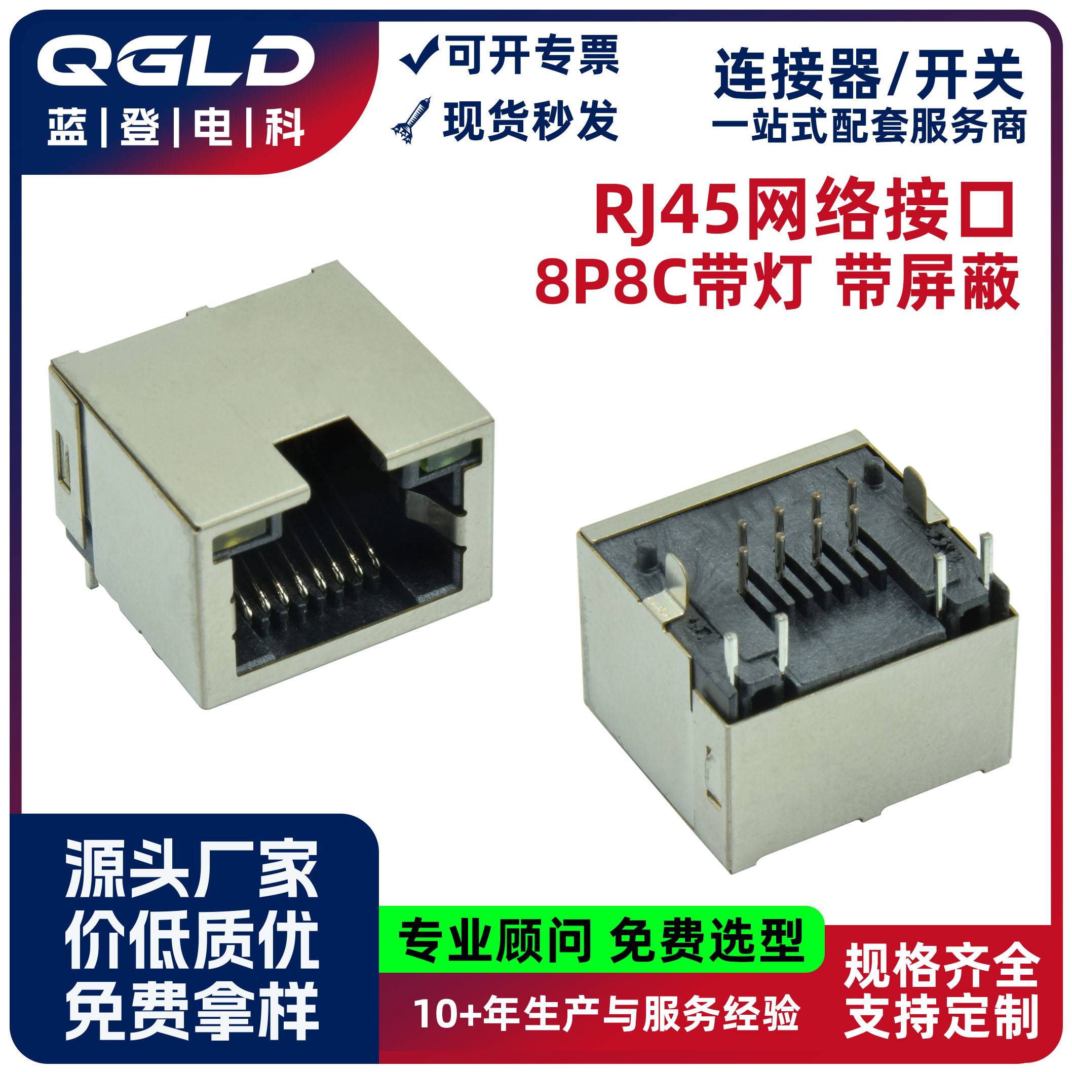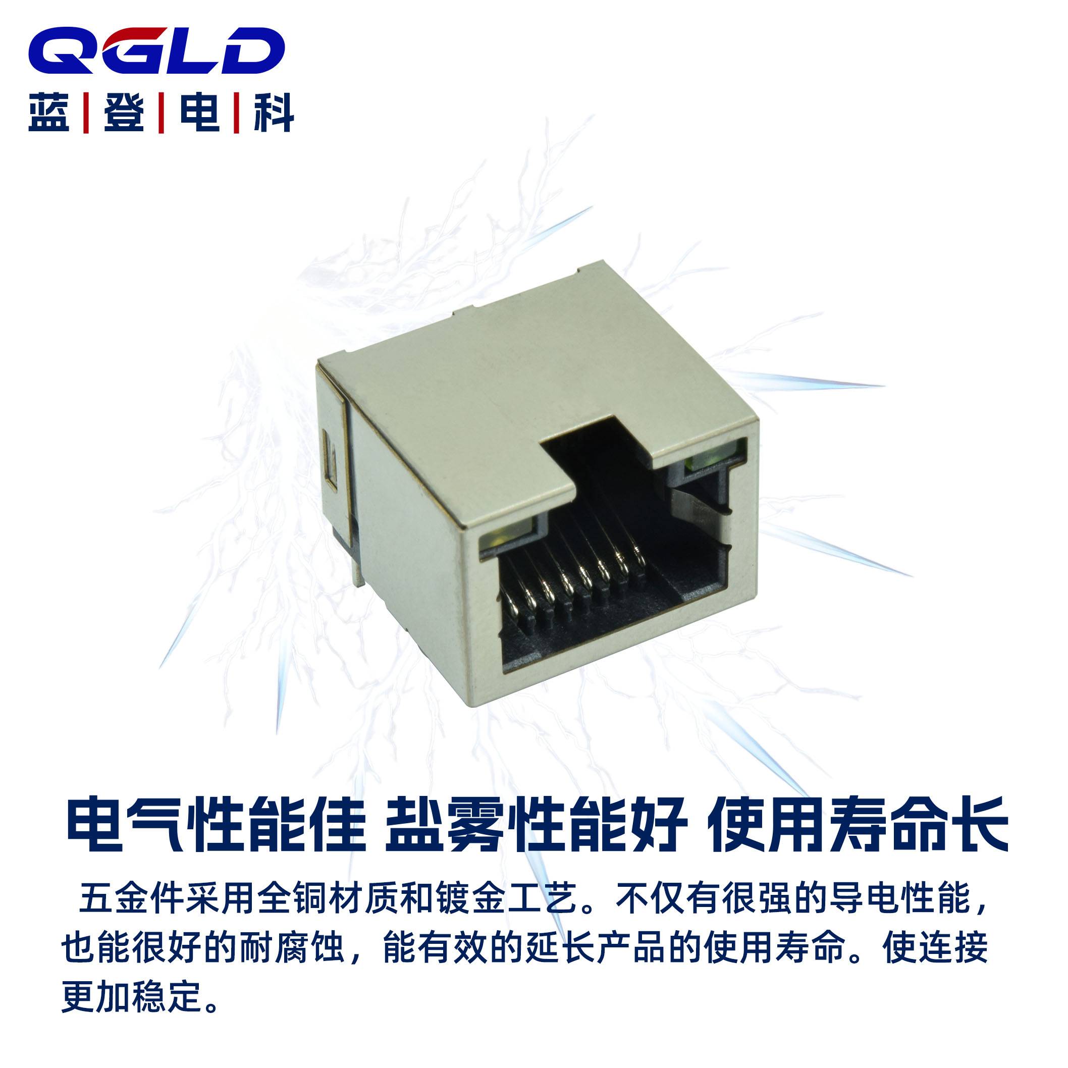RJ45以太网连接器母座接口5615卧式DIP插件带LED灯左黄右绿镀金针