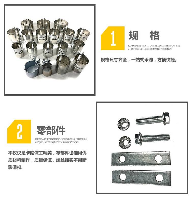 挖掘机排气管快装式强力卡箍 各种不锈钢变径卡箍 消声器抱箍 可定制