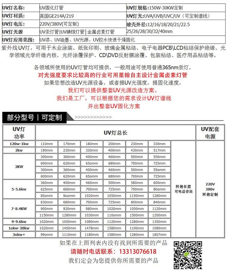 气体放电灯 8kw1385mmUV卤素灯按需定制 大功率输出能量高