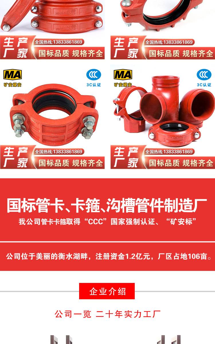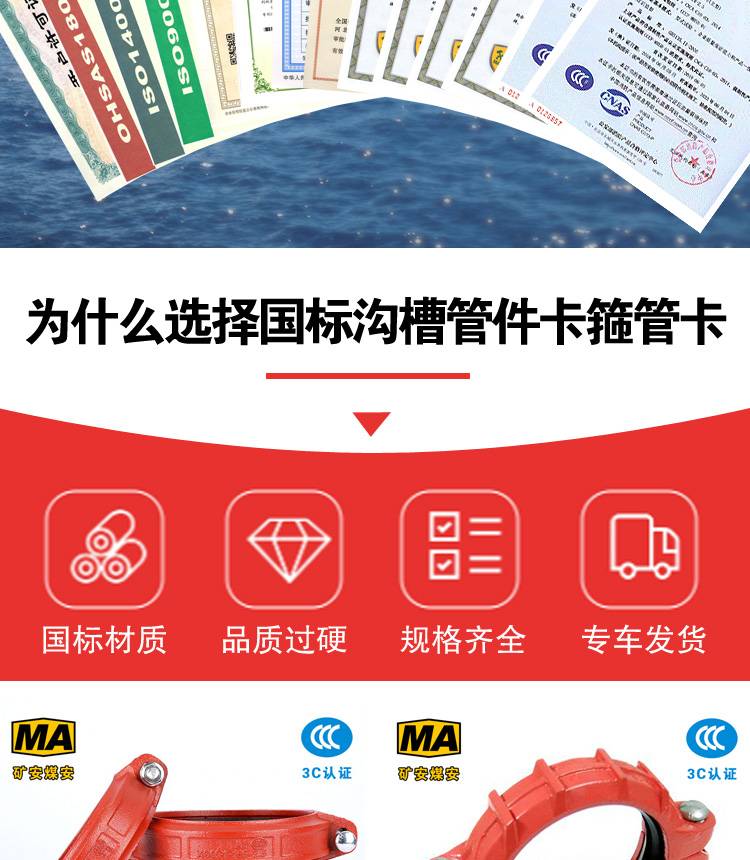 3C认证 矿用卡箍 沟槽管卡 沟槽卡箍 沟槽快速接头
